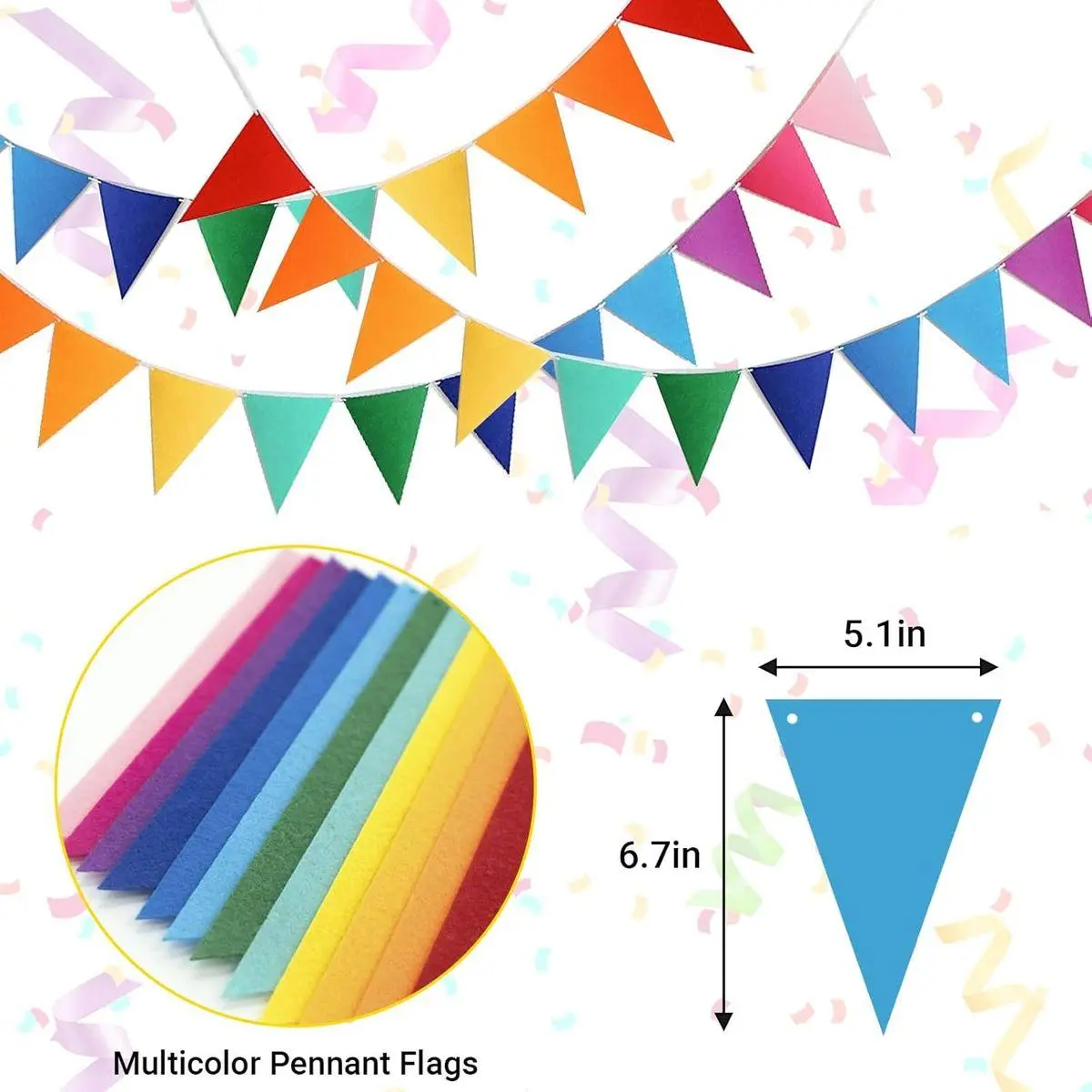 Easy-to-Assemble Rainbow Banner: Create a vibrant backdrop effortlessly with our colorful felt pennant flags. Each set includes 4 strings banners, each banner with 12 flags( 5.1"x6.7"/13x17cm) + 4 white ribbons(8.2 ft/2.5 meter) + 4 durable plastic rope clips- ready for you to string and customize exactly the way you want!