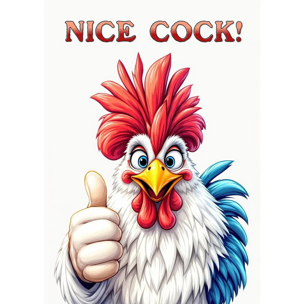 Funny Rooster Nice Cock! Canvas Wall Art, Humorous Farm Animal Print, Hilarious Rooster Thumbs Up Poster, Unique Bathroom/Man Cave Decoration Gift for Chicken Lovers