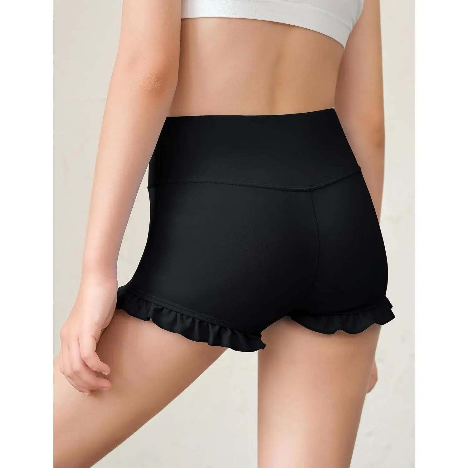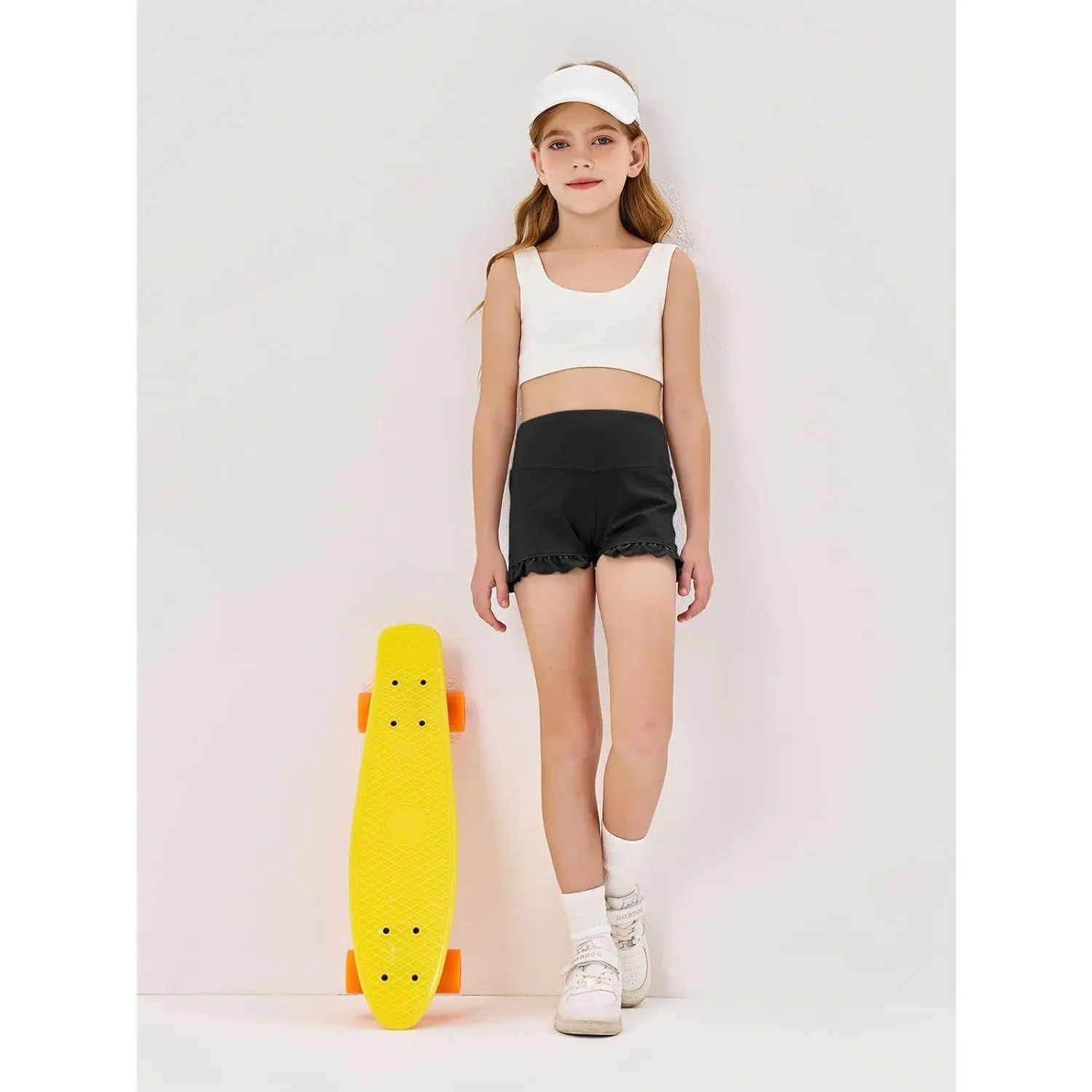 Girls Athletic High Waisted Ruffle Shorts - Comfy Yoga Dance Workout Gymnastics