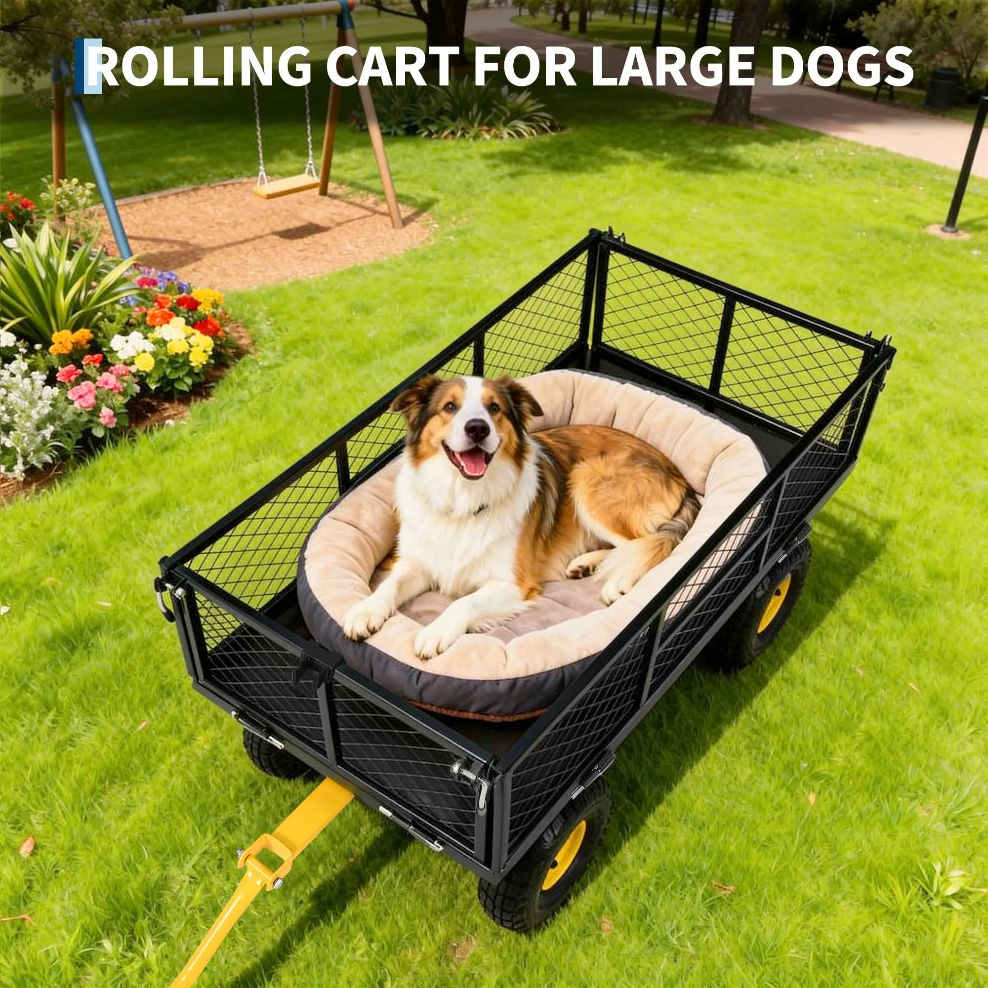 🌿 Haul heavy outdoor loads with less effort using this heavy duty steel garden cart, built with a 900 lbs capacity, removable mesh sides, and a flatbed conversion for flexible yard and farm transport.