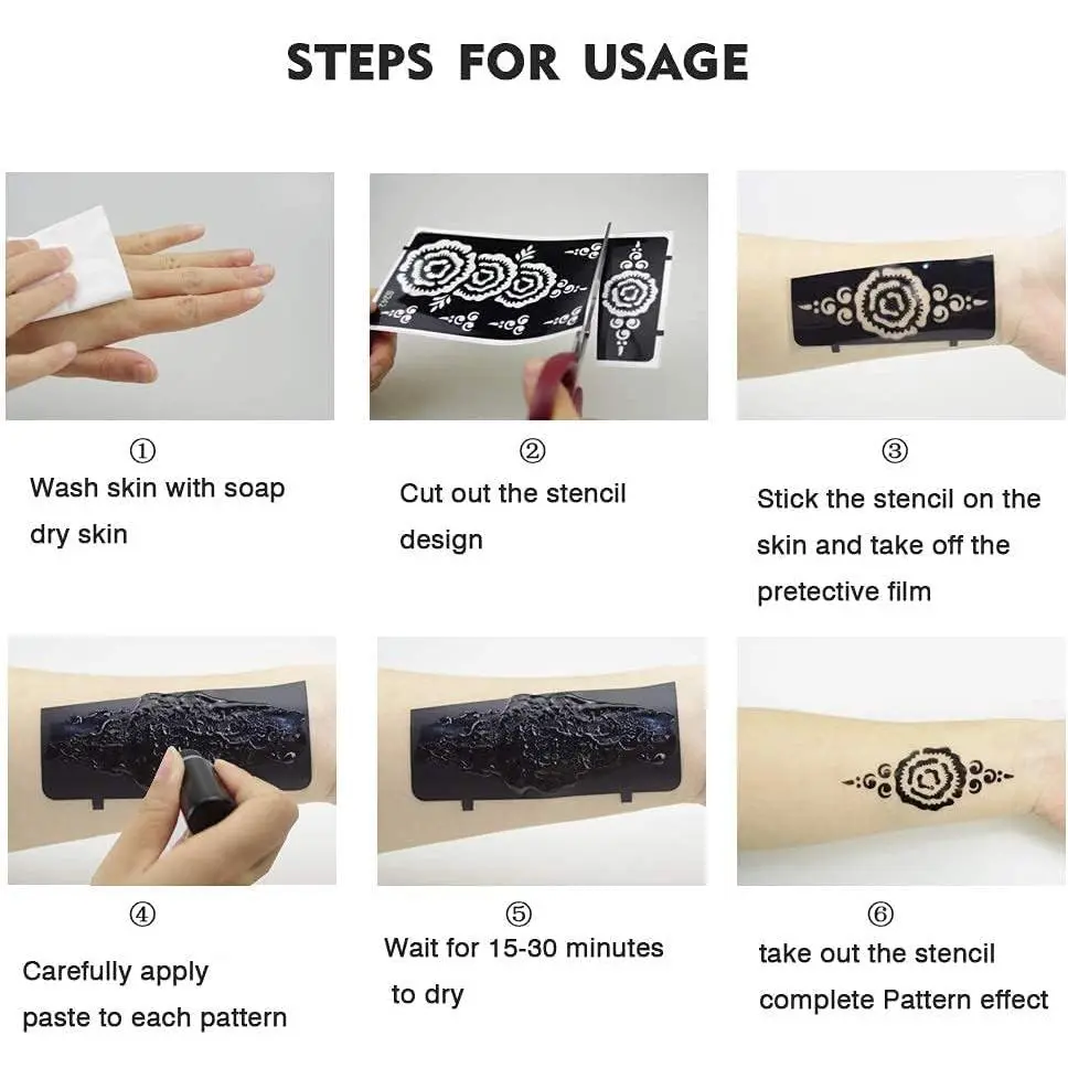 10 Sheets Henna Tattoo Stencils 10 Pair Arm Hand Tattoo Template Temporary Indian Arabian Glitter Airbrush Tattoo Stickers for Face Body Paint DIY (Black)