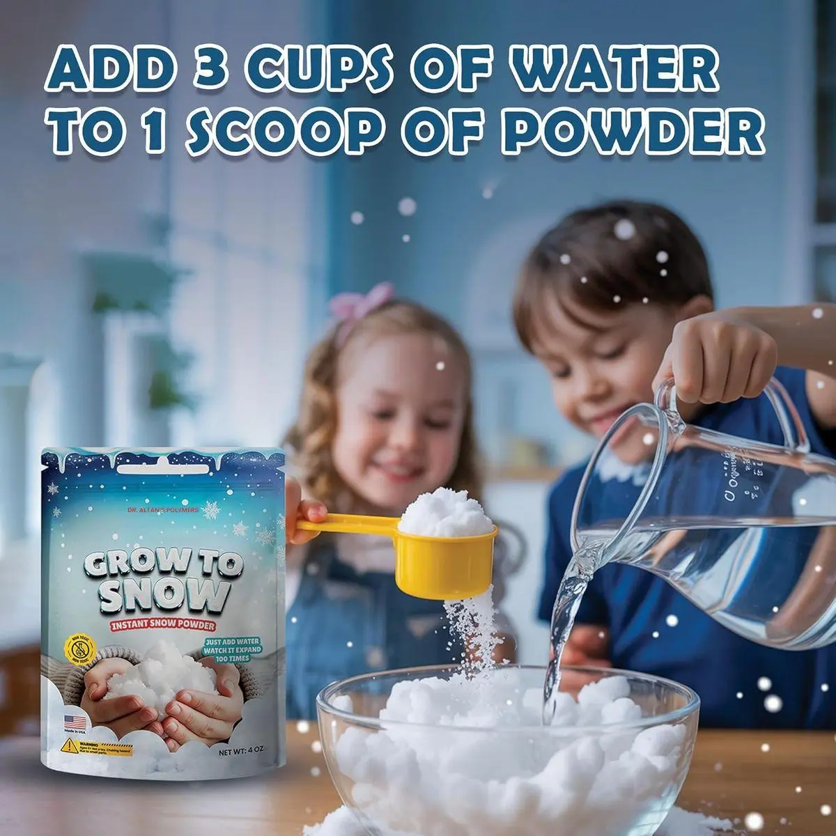 ULTRA-FINE INSTANT SNOW: Achieve the fluffiest snow texture effortlessly. Our high-quality, ultra-fine polymer powder absorbs water quickly to instantly create realistic snowflakes and perfect instant snow.