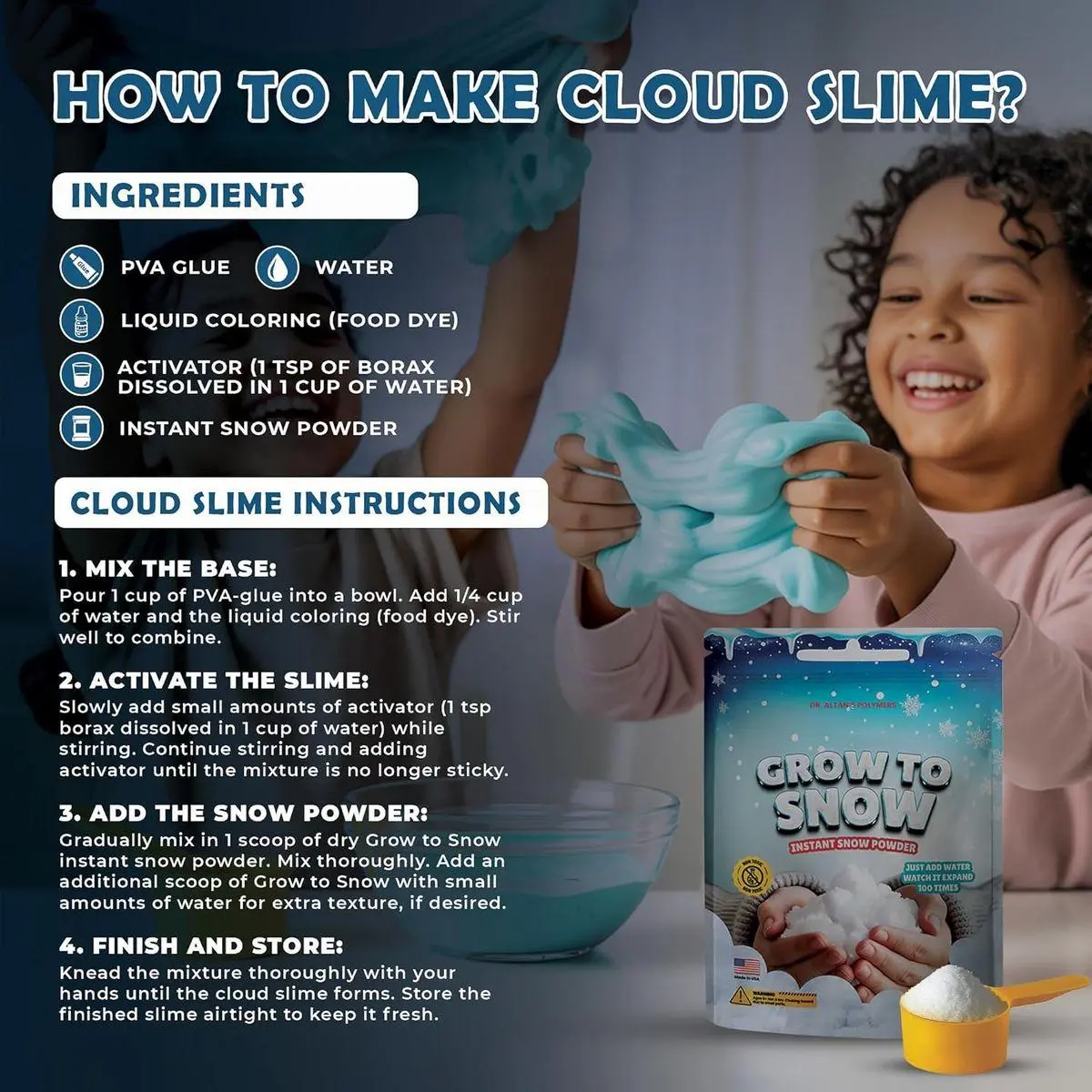 100% SAFE POLYMER: Our premium instant snow is the ideal educational and fun material. It's soft, cool to the touch, and non-toxic, providing hours of engaging sensory play and exciting STEM learning.