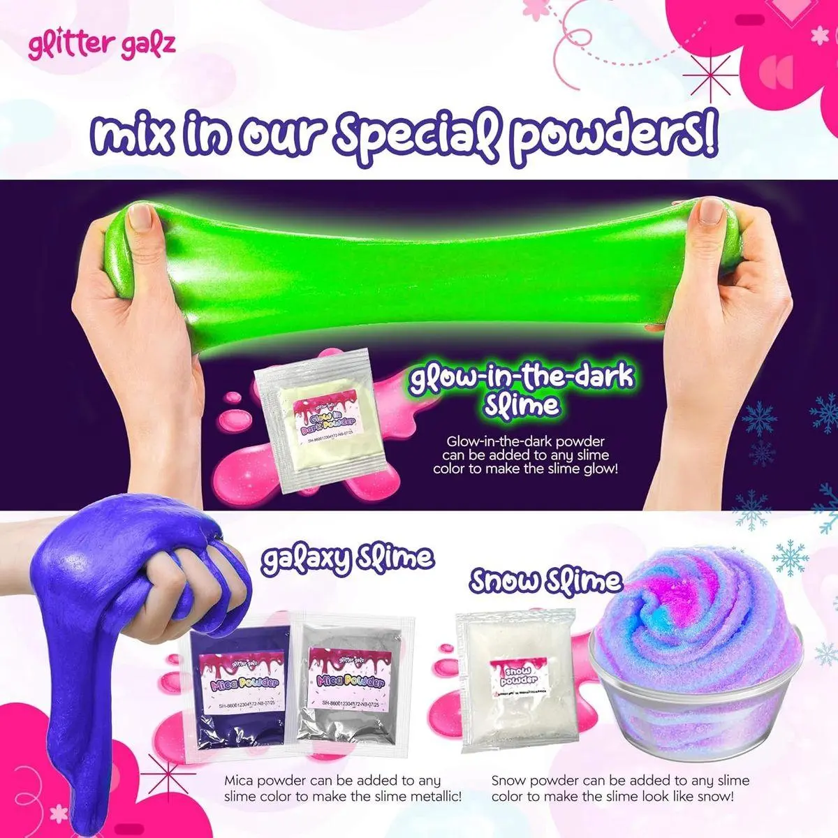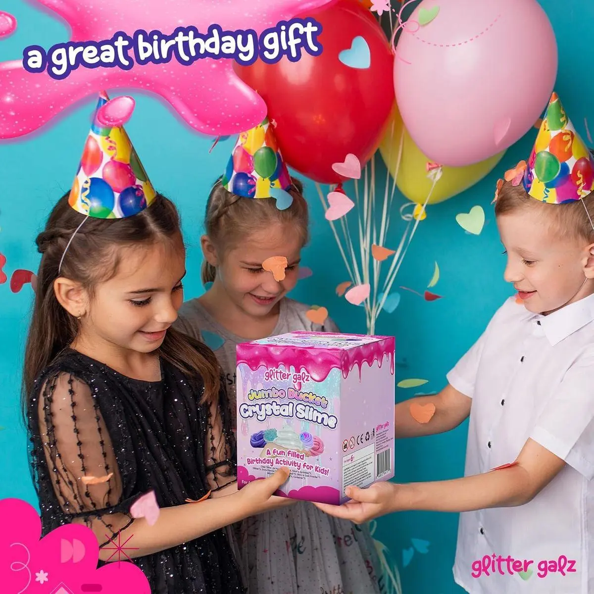 Fun Slime Set Gift for Any Occasion: Glitter Galz clear slime for kids is a hit with all ages. It’s a great surprise for birthdays, a fun way to keep kids entertained during playdates, or a creative group activity to bring out on a rainy afternoon.