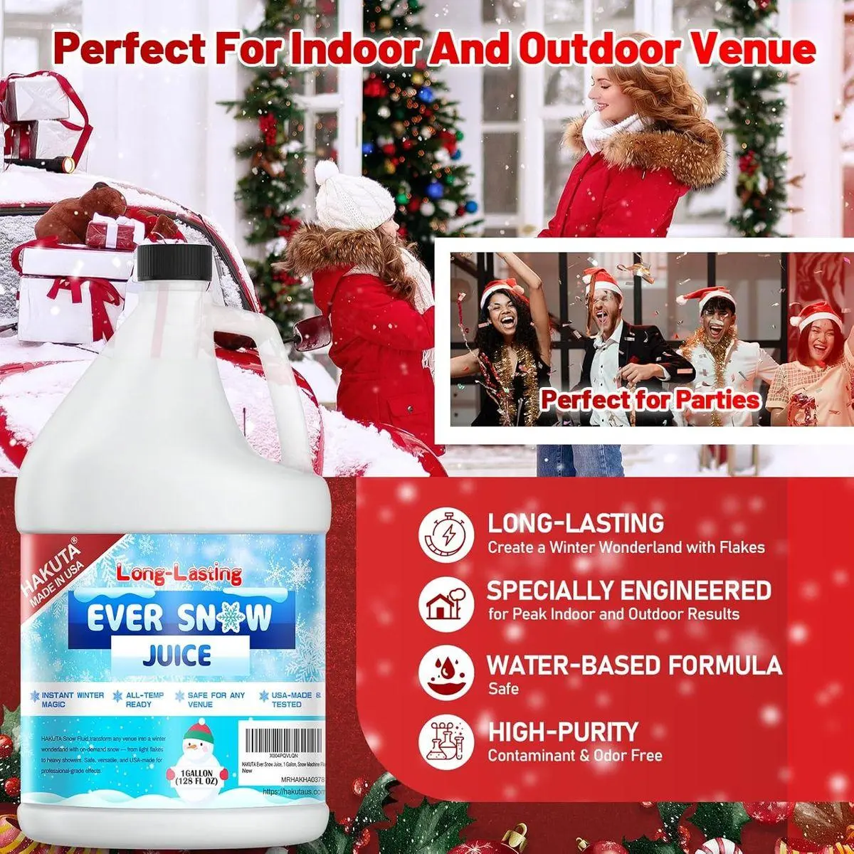 Experience Realistic Snow Accumulation: Our snow machine fluid produces flakes that naturally cling and build on surfaces, creating authentic snowy landscapes for outdoor events and festive decorations without artificial residue