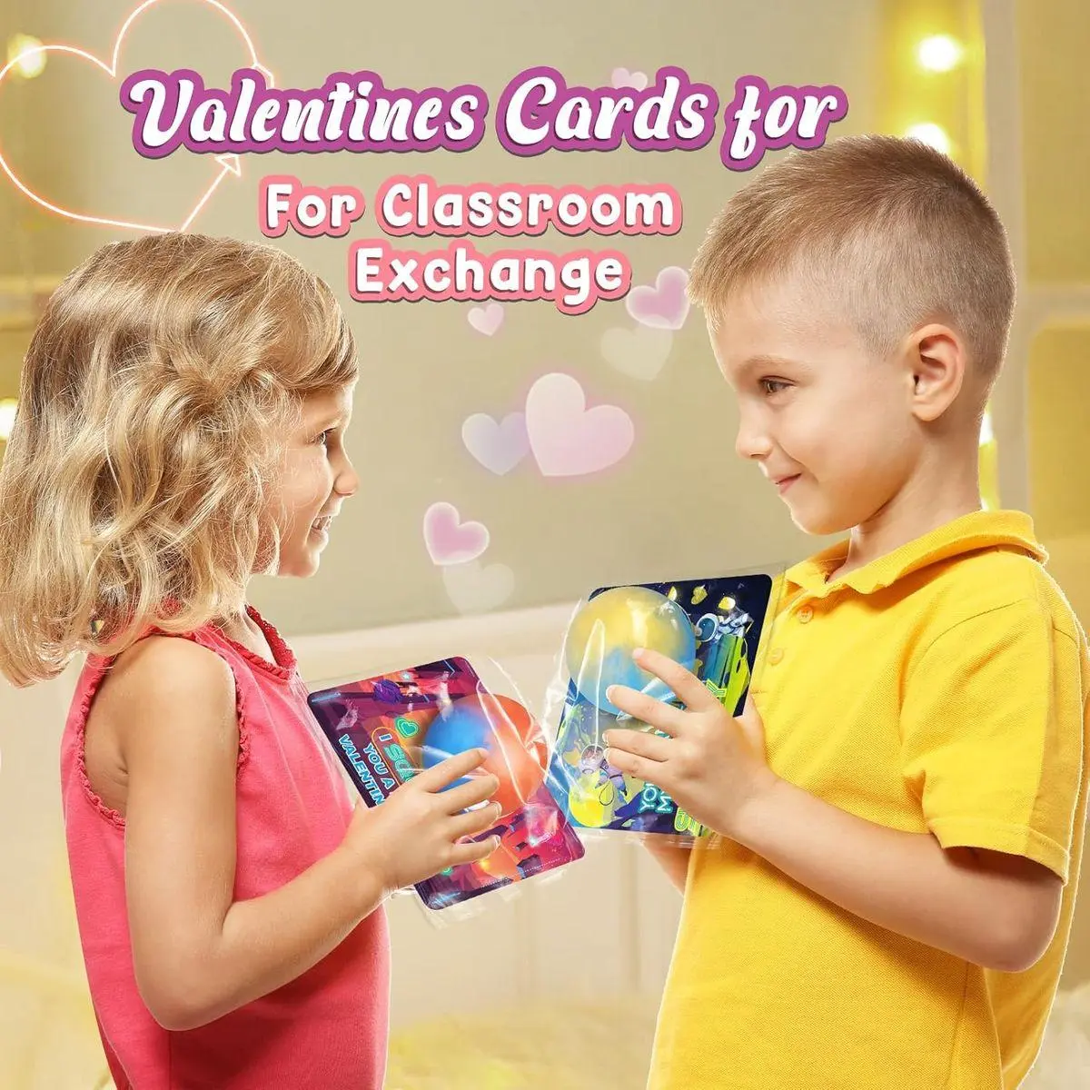 【Unique Valentine Exchange Cards for Kids】There are 6 different deigns of cards in space theme with Valentine's punchline which match the squeeze toys theme, makes the cards more attractive. It will be a wonderful Valentine's gifts for kids. Kids can write names on " To " and " From " and hand them out to their friends on Valentine's Day. It will make the most popular valentine's day gift exchange of kids in school.