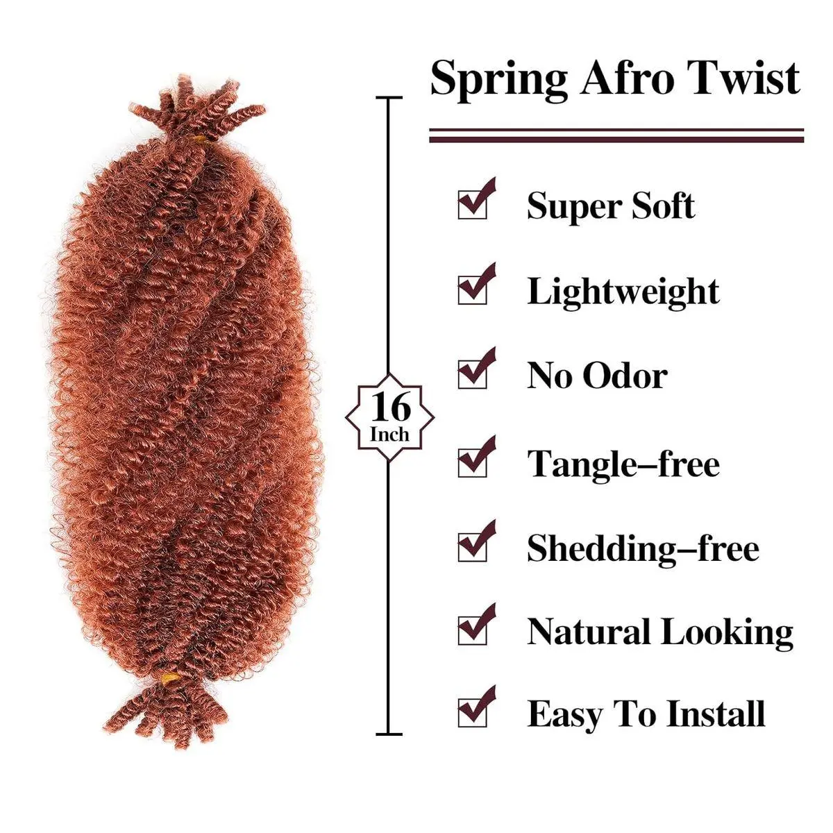 Hair Material: Springy afro twist hair made of 100% high quality low temperature fiber. Our spring afro twist hair boasts more density and natural looking,Perfect for any protective hairstyle.