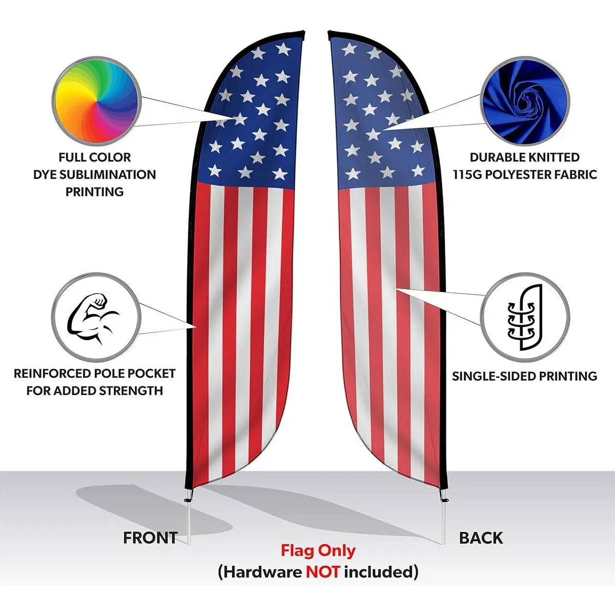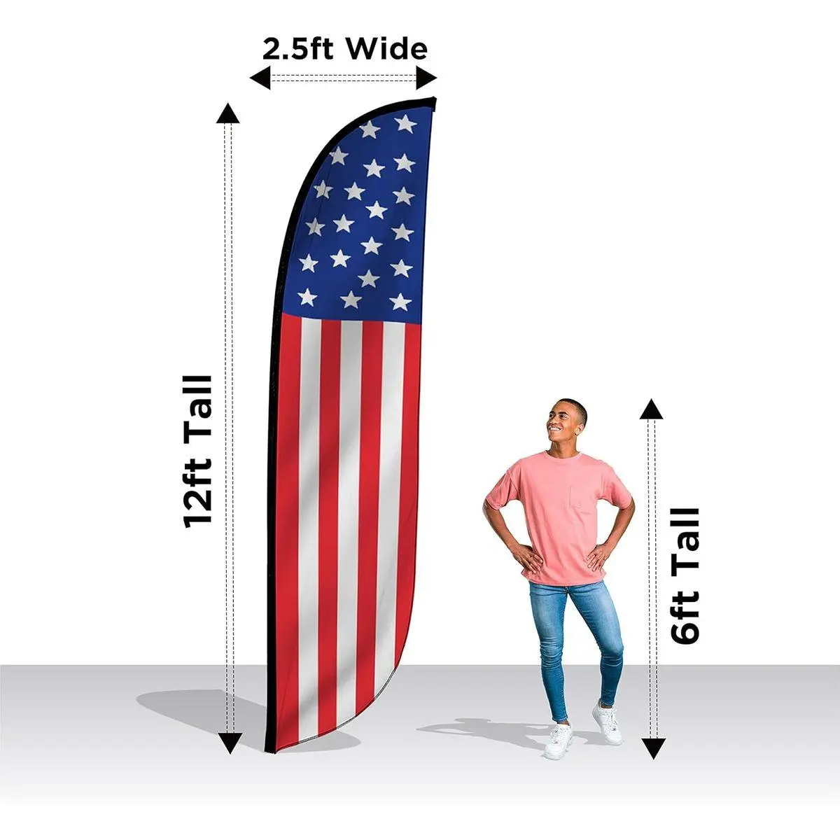 Designed to Grab Attention: the 12ft design and vibrant colors of american flag feather flag banners make them highly noticeable from a distance; a must-have if you want to increase traffic to your business