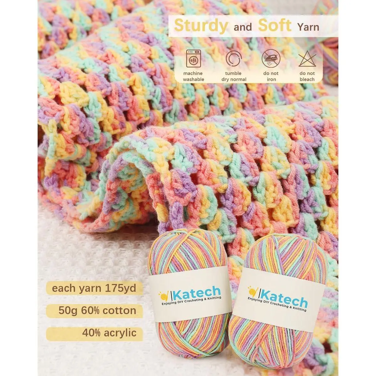 🔹Everything Included, Complete Crochet Beginner Kit: Katech crochet kit for adults contains 6 colorful yarn, 2 crochet hooks, step by step instruction booklet (Includes basic stitches /techniques), yarn needles, scissors, tape measure and other accessories. Addresses beginners’ crochet fears, complexity, missing materials. No need to buy other accessories—just open the crochet kit for beginners and start crocheting immediately!