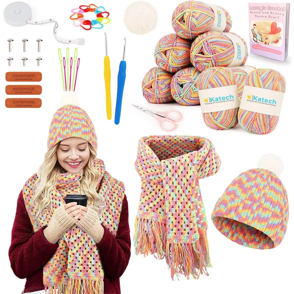 🔹Stylish and Versatile Winter Gifts, Crocheting with Love: Perfect for layering during chilly days, it’s the go-to accessory to elevate any outfit with handcrafted charm. Crochet granny square kit is an ideal gift choice for birthdays, Christmas, Mother's Day or any occasion. Surprise a loved one with a unique handmade gift and enjoy learning to crochet yourself, the Katech beginner crochet Kit is perfect for you.