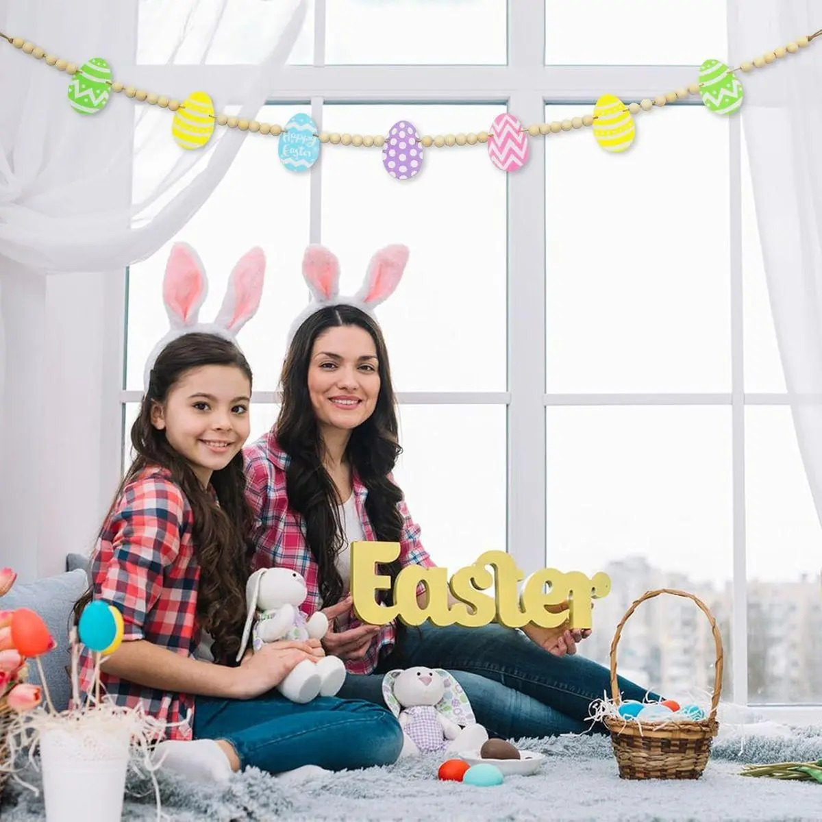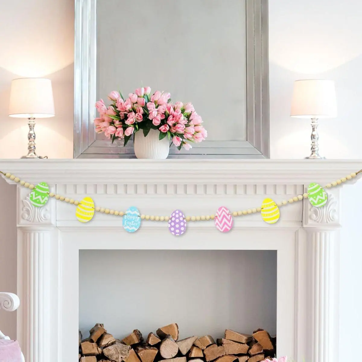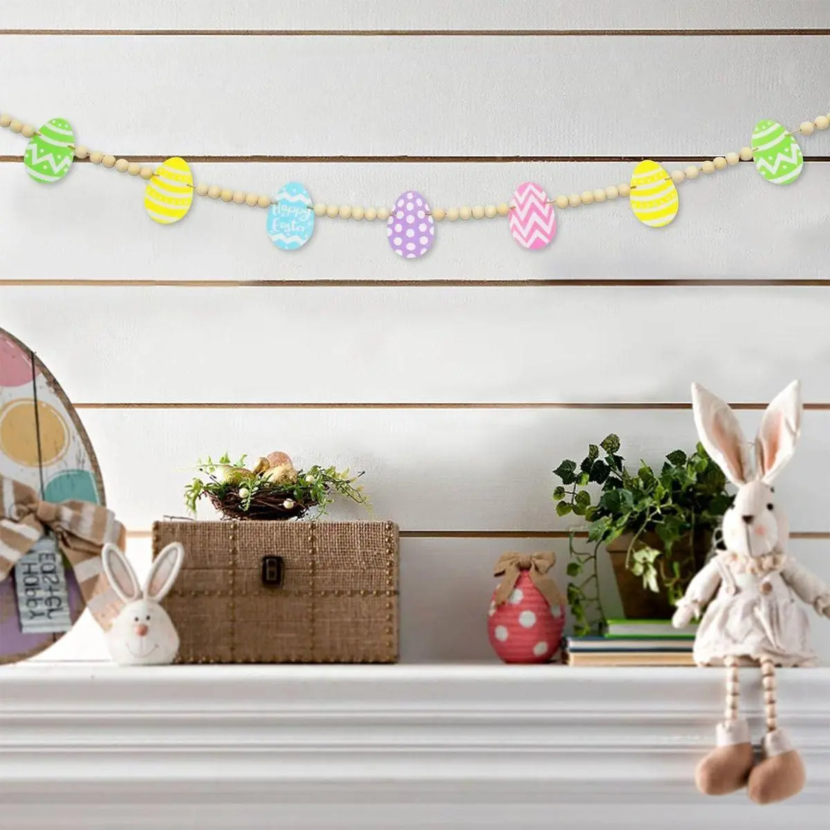 High-Quality Egg Beaded Garland - This garland is carefully constructed with sturdy wooden beads and soft felt egg-shaped charms, ensuring a high-quality decoration that's built to last and bring Easter cheer to your home year after year.