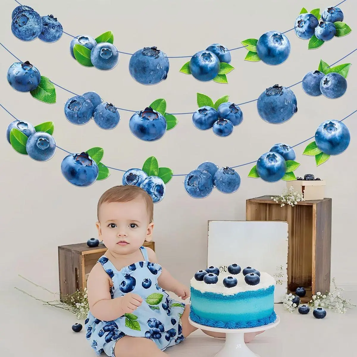 VIBRANT DESIGN: Beautiful blueberry birthday decorations are designed with green leaves creates a fresh, seasonal atmosphere suitable for multiple occasions