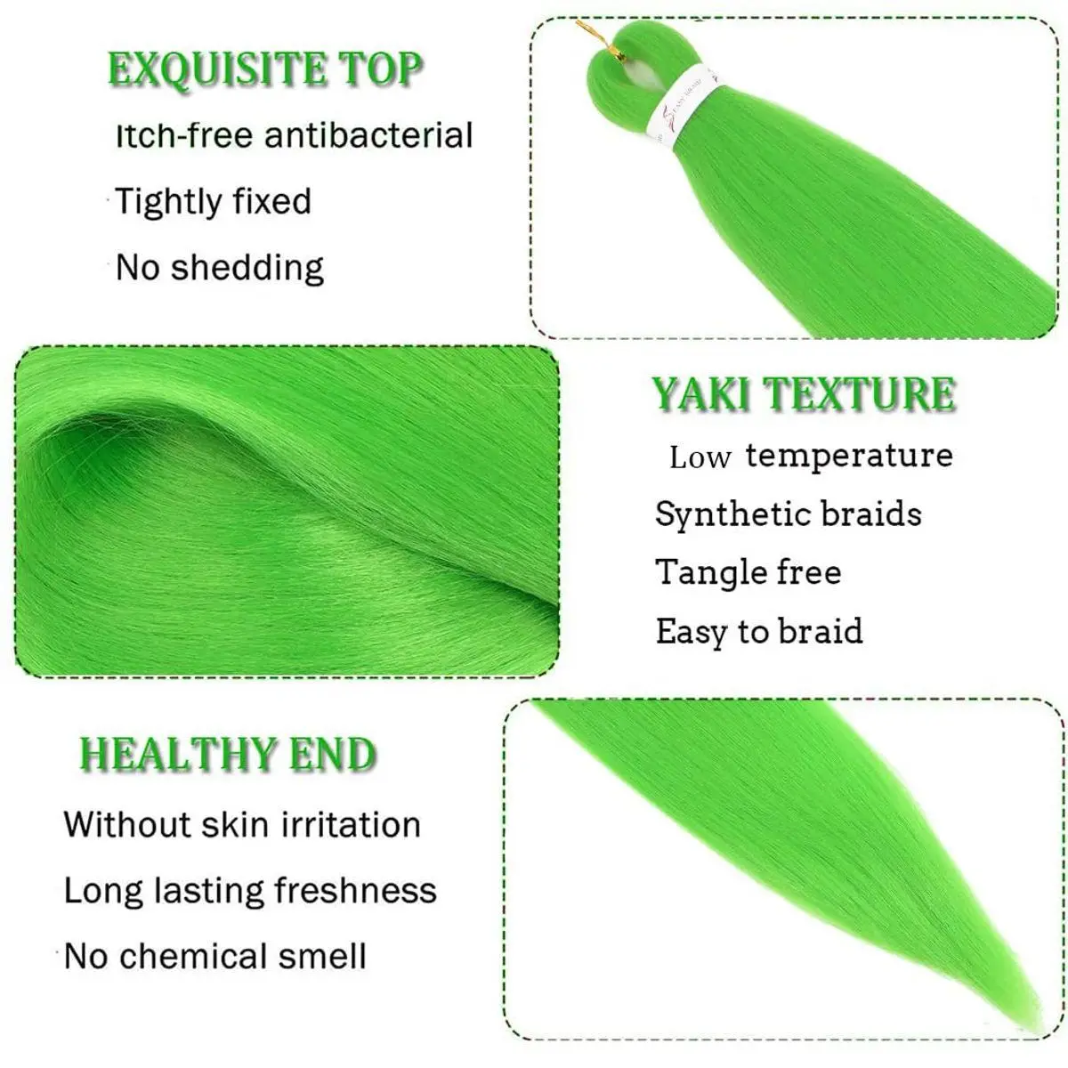 Hair Material: The pre stretched Easy braiding hair is made of the high quality, low temperature, flame retardant synthetic fiber, Yaki texture is natural and soft