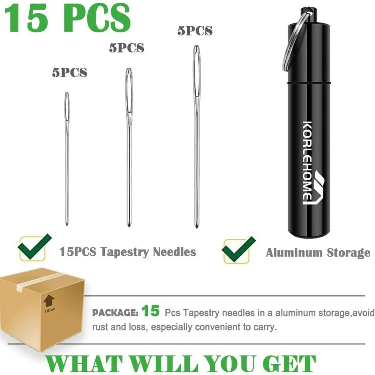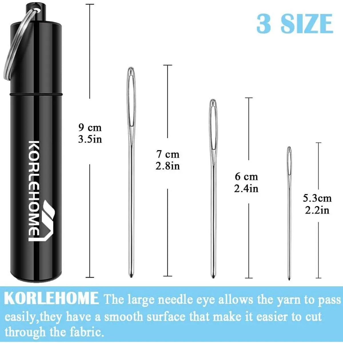 【3 Sizes Needles】 You will get 15 pcs large eye Darning Needles(3 sizes). 5 x 2.8 inch, 5 x 2.4 inch, 5 x 2.2 inch. Perfect sizes of Blunt Needles for you to choose to finish your project.