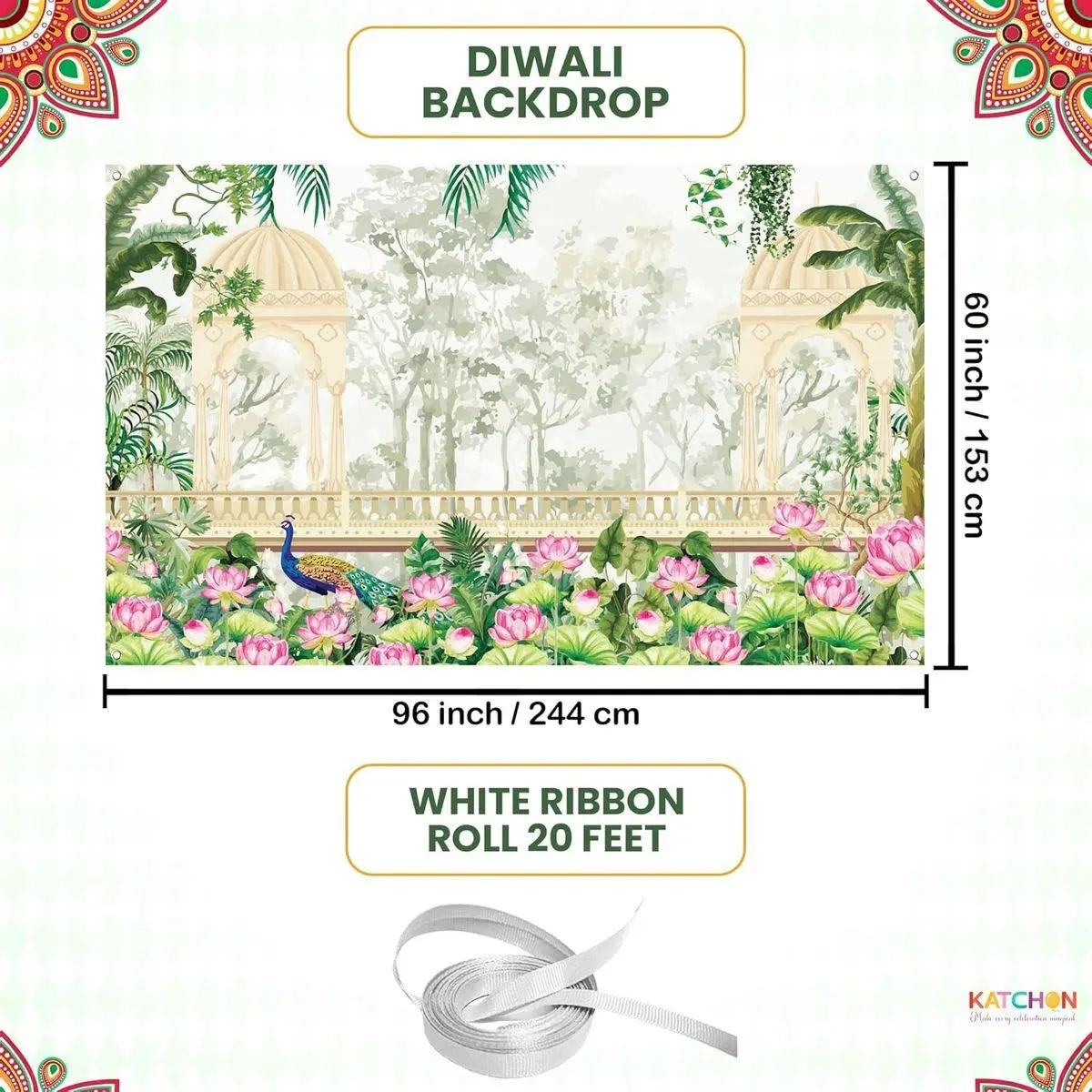 7.5X5 FEETS | VIBRANT PEACOCK DESIGN : Perfect for home decor, this high-quality, detailed poster includes a 9mm x 6m white ribbon roll for easy hanging, bringing a touch of nature and serenity to any room. lotus indian decoration backdrop is Ideal for adding style to living rooms, bedrooms, and offices, diwali decorations for home outdoor, diwali backdrop decoration, indian diwali decorations, indian wedding decorations, ganesh decorations backdrop, peacock back drop, satyanarayana pooja backdrop, indian festival backdrop decorations.