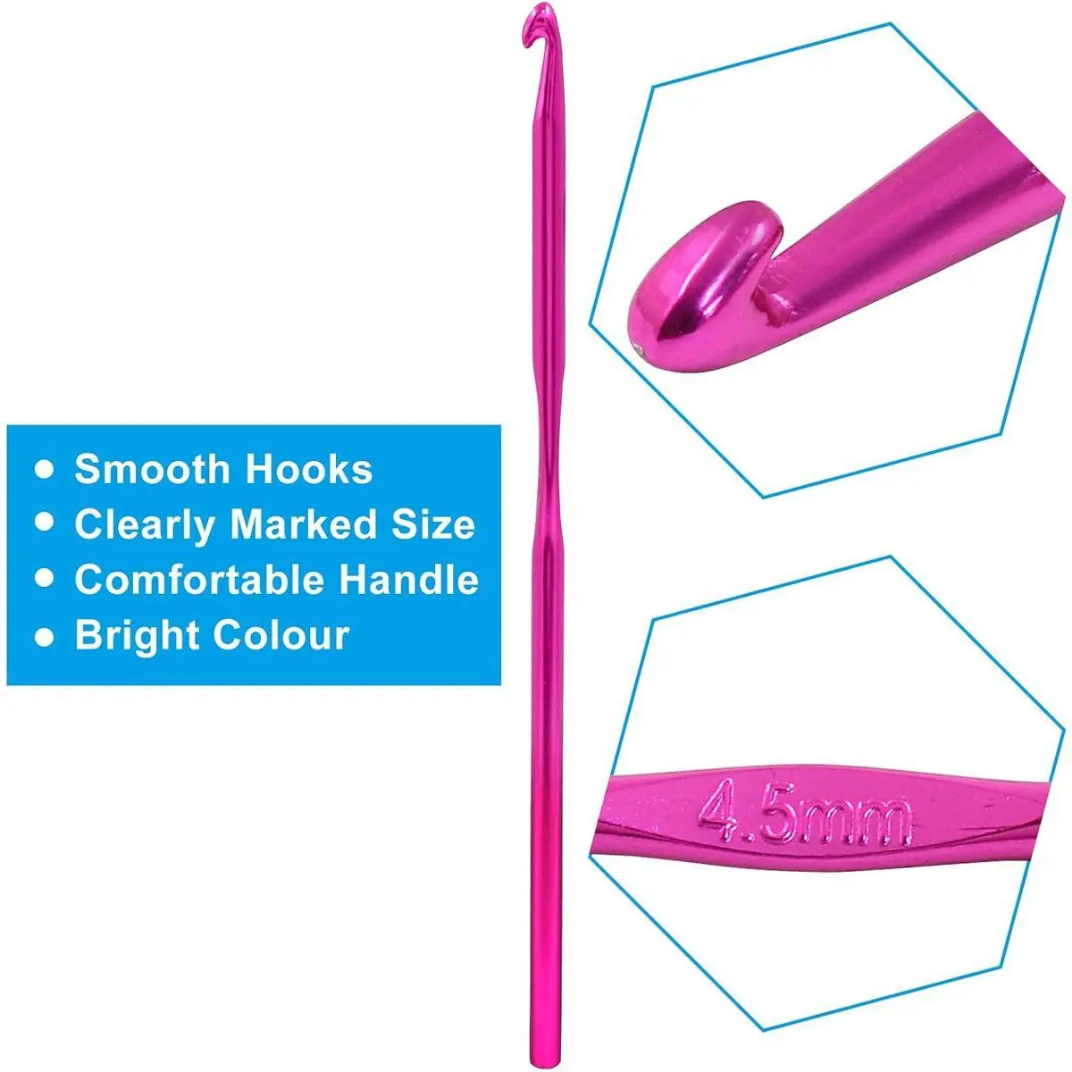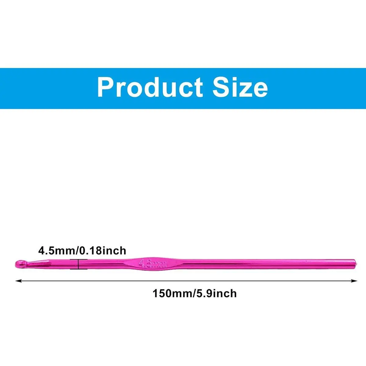 【What Will You Get】- 6 Pcs Aluminum Crochet Hooks. Crocheting Size: 4.5mm/ US Size 7. Knitting needle overall length: 150mm/ 5.9inch.
