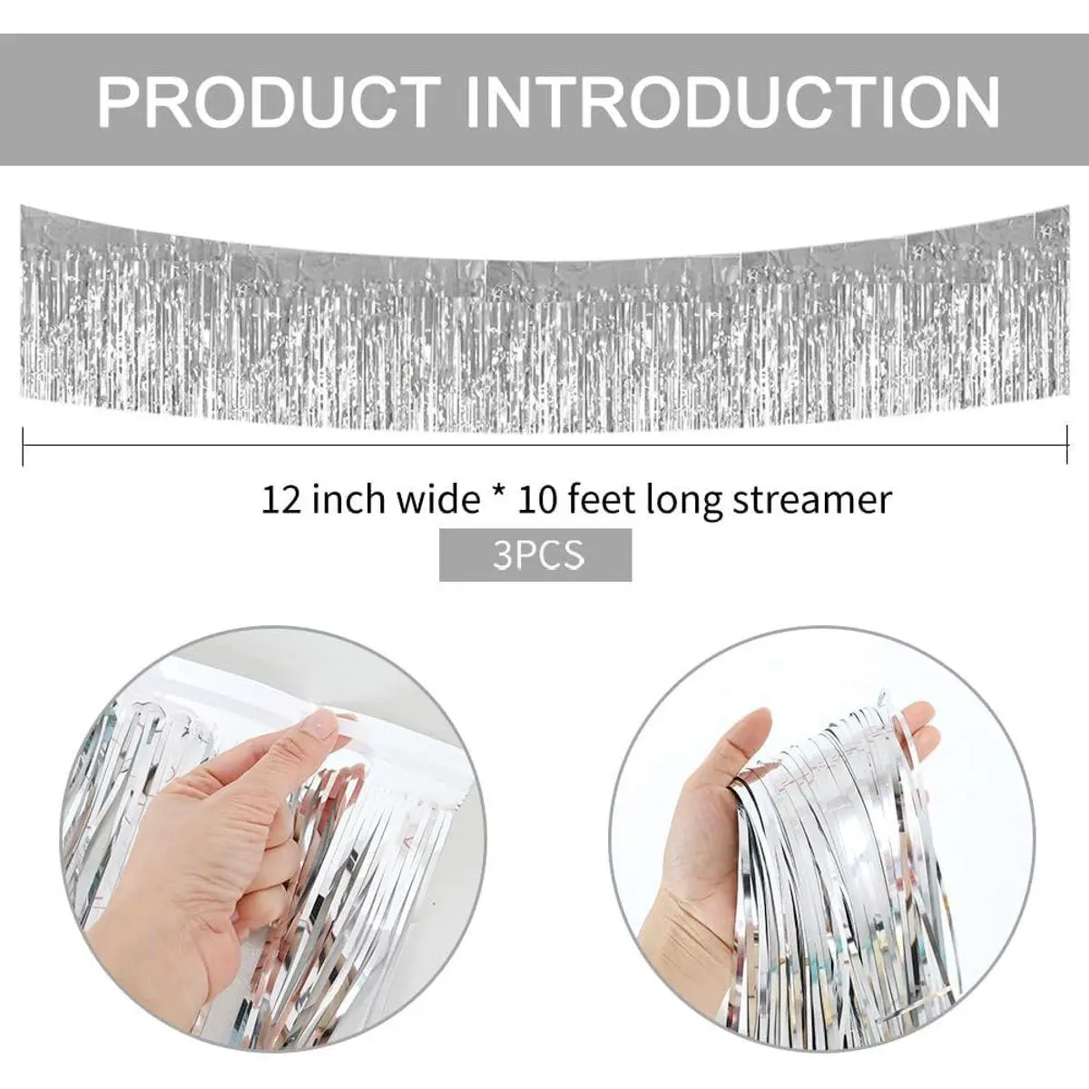 Package includes: 3 Packs metallic fringe garland / shiny tassel banner, each garland is 12 inches wide * 10 feet long, enough to decorate your party