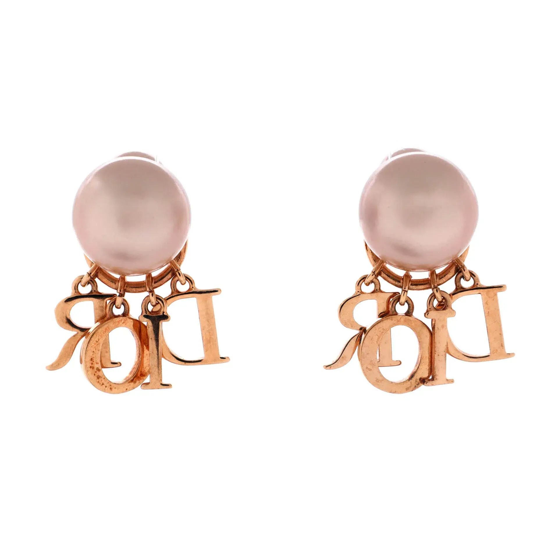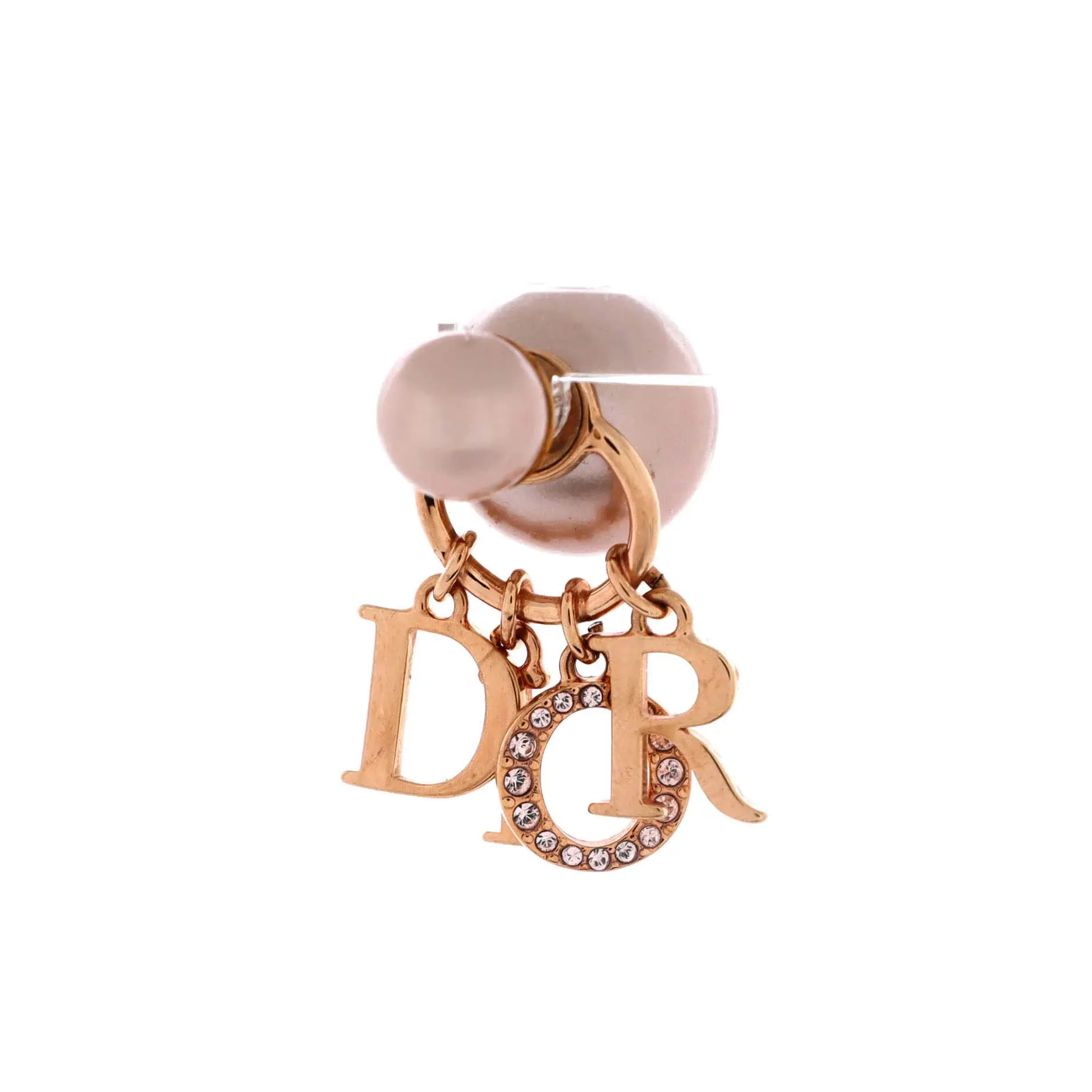 Model: Tribales Dangle Dior Logo Stud Earrings Metal with Faux Pearls and Crystals