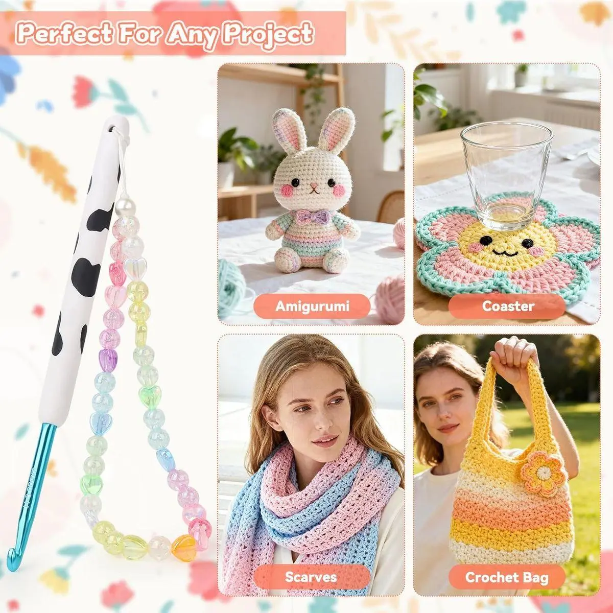 High - Quality Materials: The handles are crafted from soft polymer clay for a pleasant touch, while the hook part is made of durable aluminum. The aluminum hook ensures a smooth crochet experience without catching on the yarn
