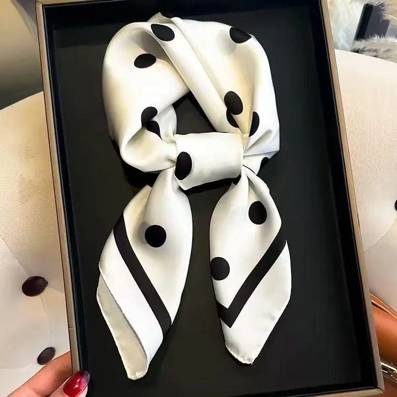 Elegant polka dot print silk scarf, silk scarf, 70.0 × 70.0 cm, perfect for everyday wear and gifting, soft and stylish, jacquard.