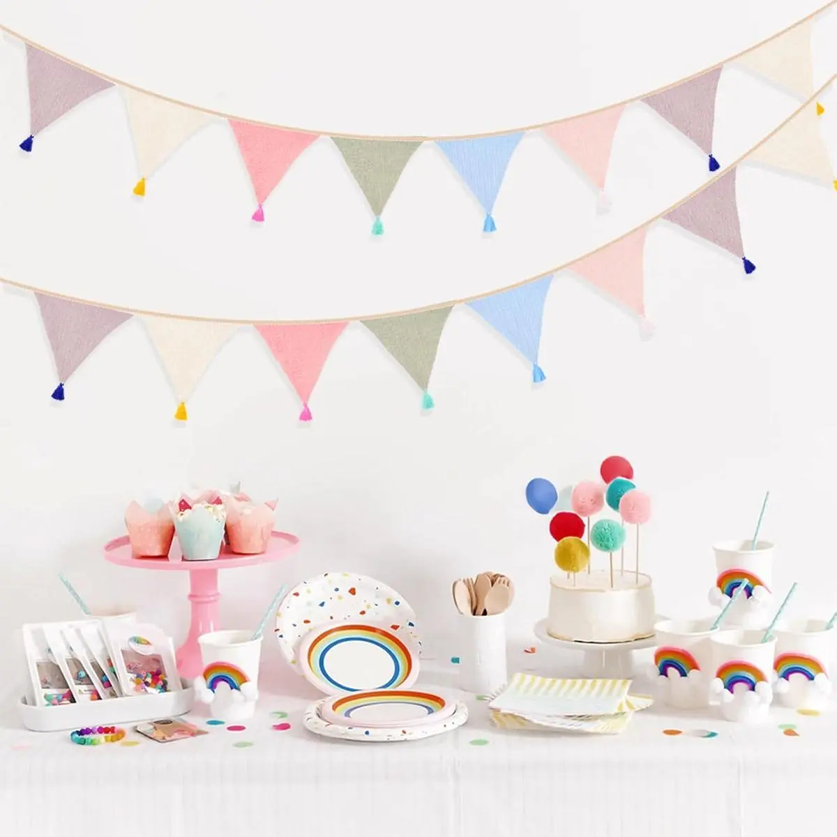 Morandi Bunting Banner with Tassel: Designed with 6 morandi color tones and all decorated with tassels at the end of the banner to add a touch of color to the decor. The party banner garland works as a charming gender-neutral decoration for baby showers or children's spaces