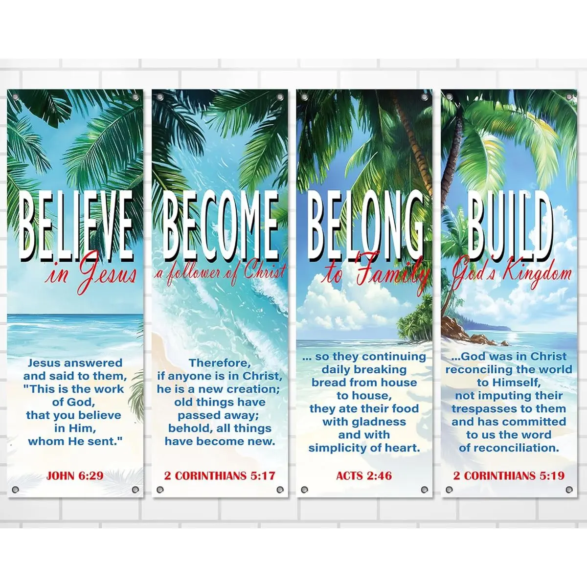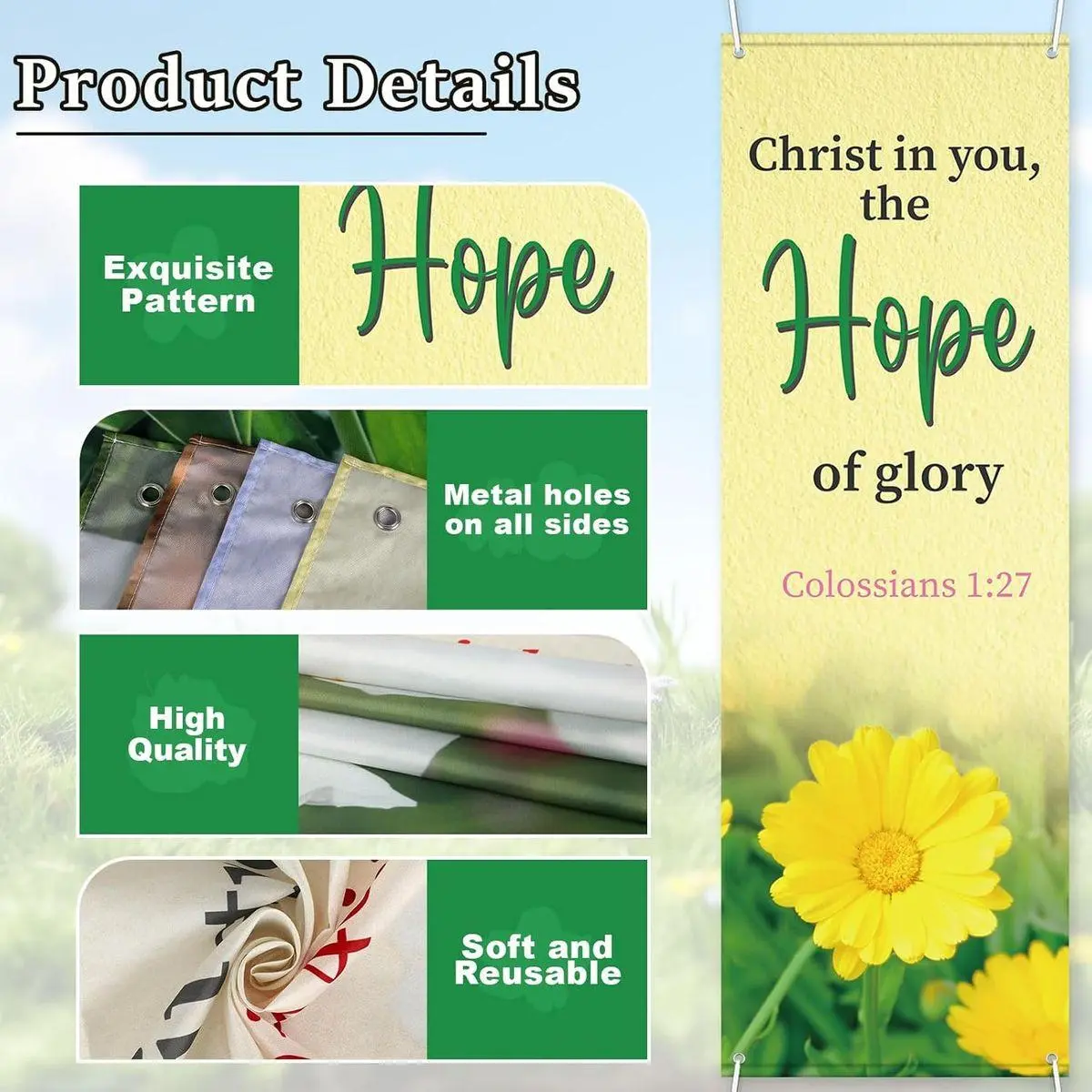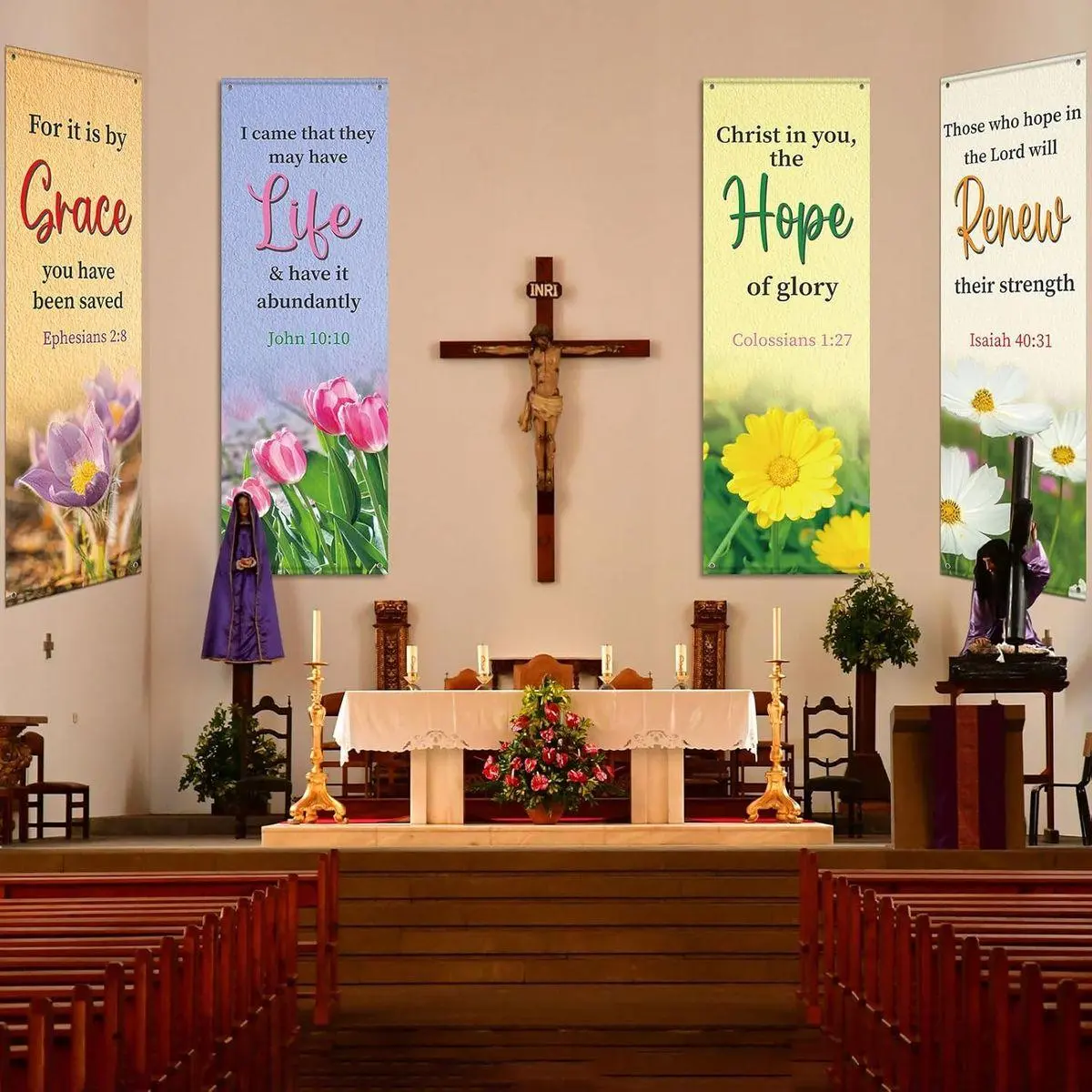 High quality and durability: Enhance your sacred spaces with these elegant, colorfast blooming flower hanging signs for church decor featuring scripture. Craft from 100% polyester fabrics, these banner decorations are crafted for long lasting durability. Designed to maintain their simplicity and warm colors, these religious signs are built to withstand the test of time while creating a soothing atmosphere.