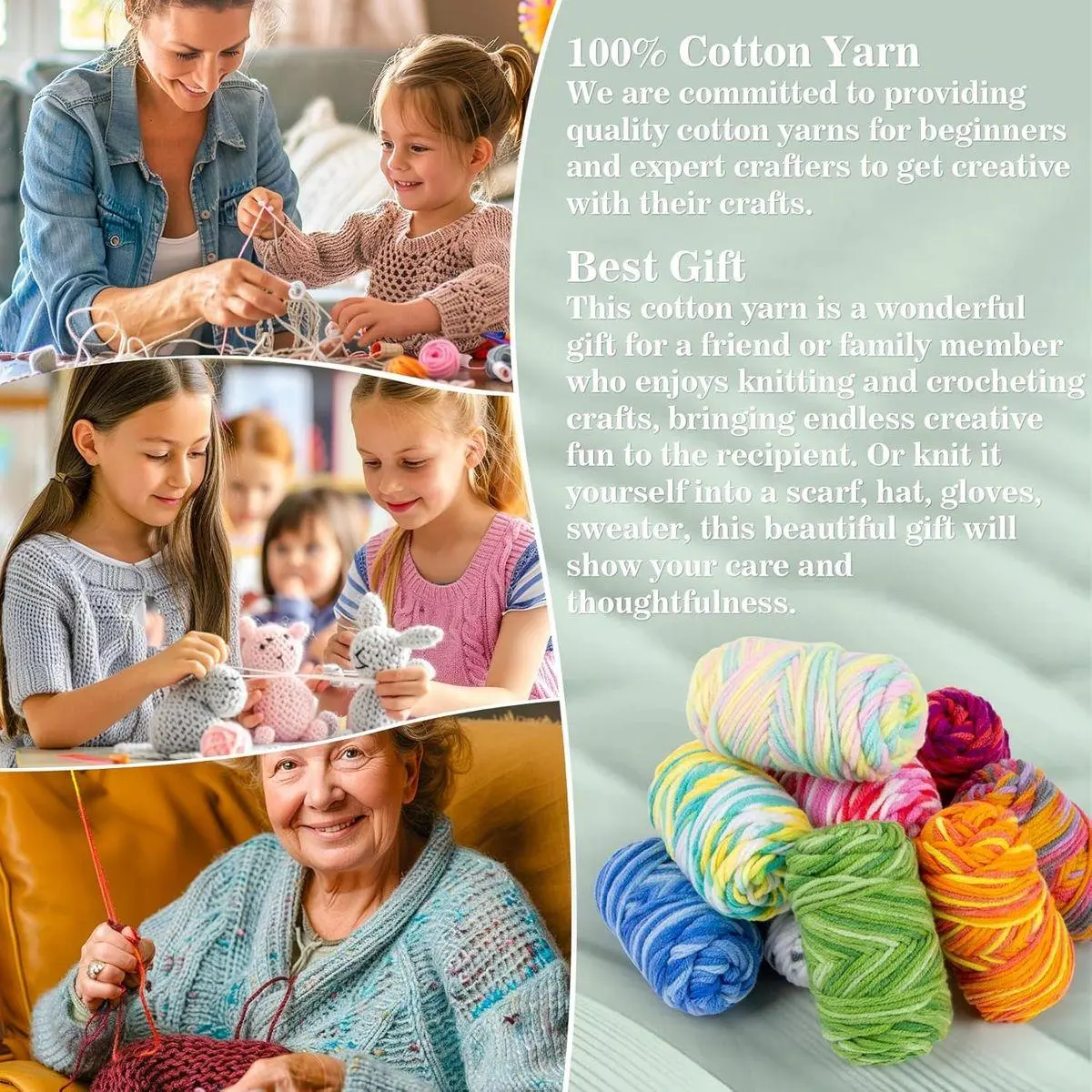 COLORFUL YARN: 10 different colors of cotton yarn, multi-color yarn for crochet and knitting beginners, bright and vibrant, soft colors that won't fade, easy to take care of, make handmade products more colorful and add decorative effect. It can add highlights and personality to your knitting works. Softer and more comfortable than ordinary yarn, it can meet all your knitting needs