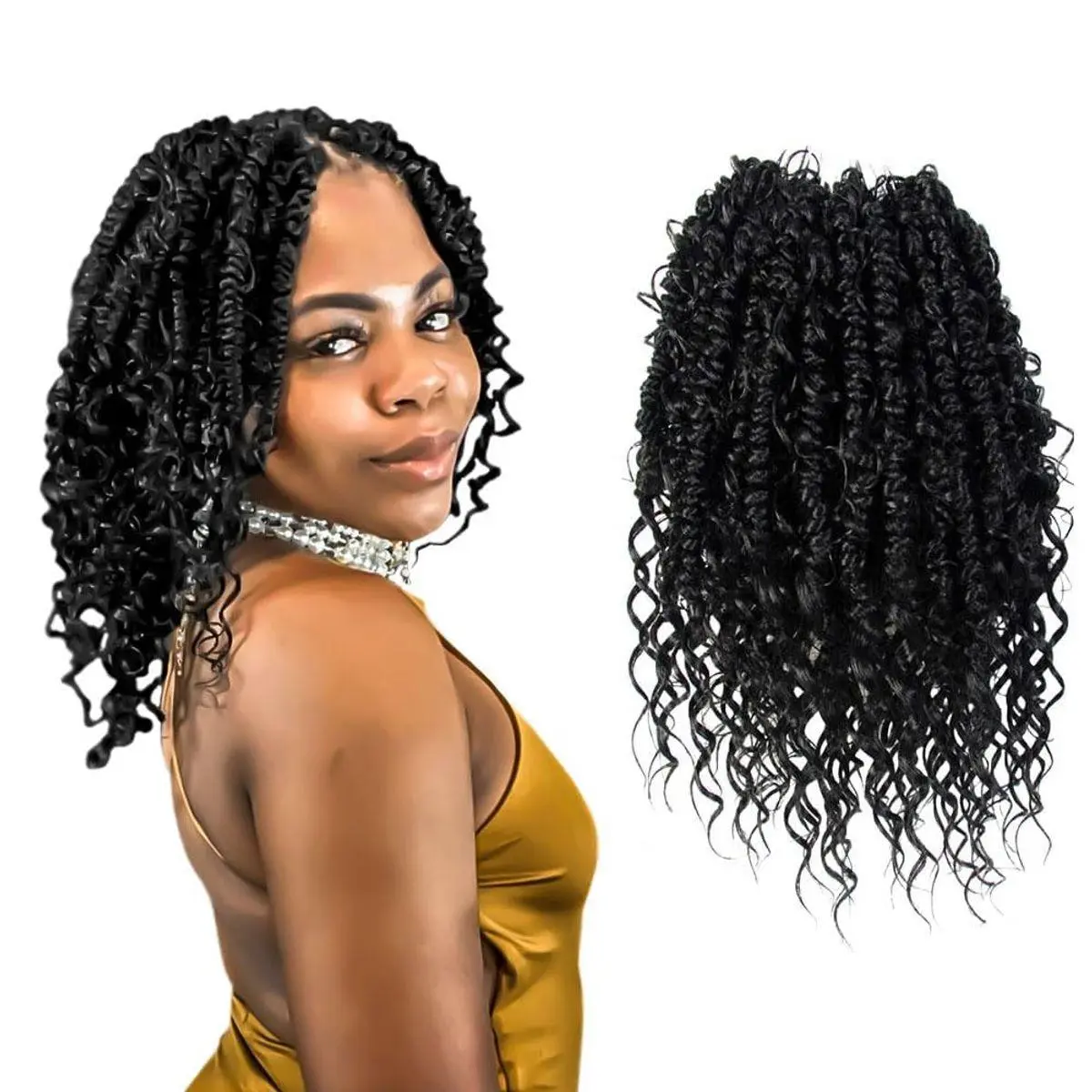 Boho Crochet Passion Twist Hair Pre looped, 10 Inch Goddess Passion Twist Crochet Hair with Curly Ends 8 Packs Natural Black Pre-twisted Bohemian Crochet Braids (8 PCS/88 STRANDS, 1B)