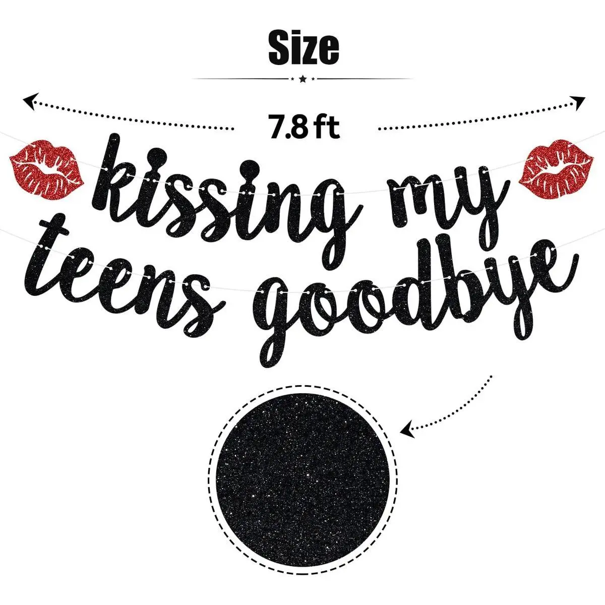 Package Contents: Includes black glitter letters of "Kissing My Teens Goodbye" with a little red lips, 2 strings and 1 plastic needle. So this sign will make an unforgettable moment for happy 20th birthday anniversary celebration.