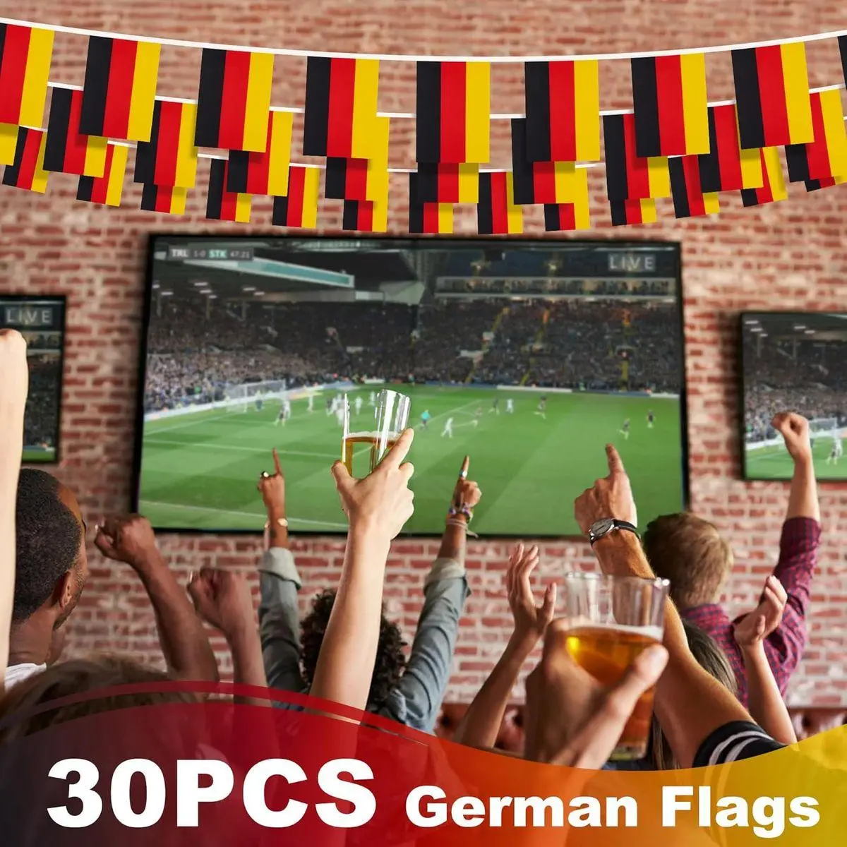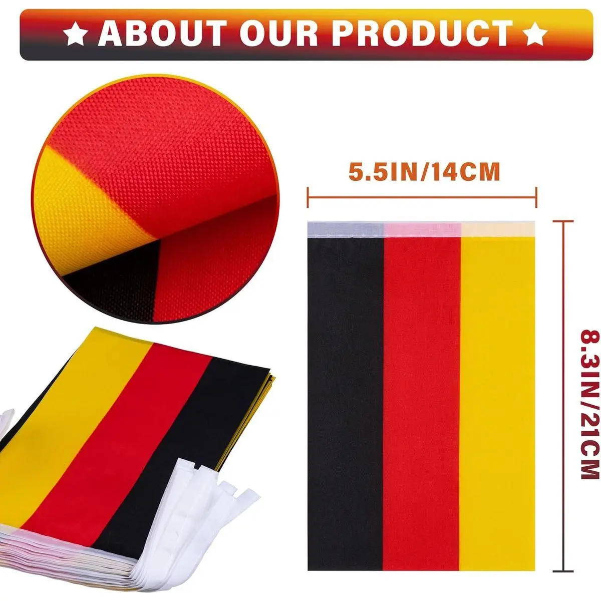 【Specifications】Each string is approximately 33 feet long. Includes 30 pcs German flags. Each flag is approximately 5.5 in wide and 8.2 in long.