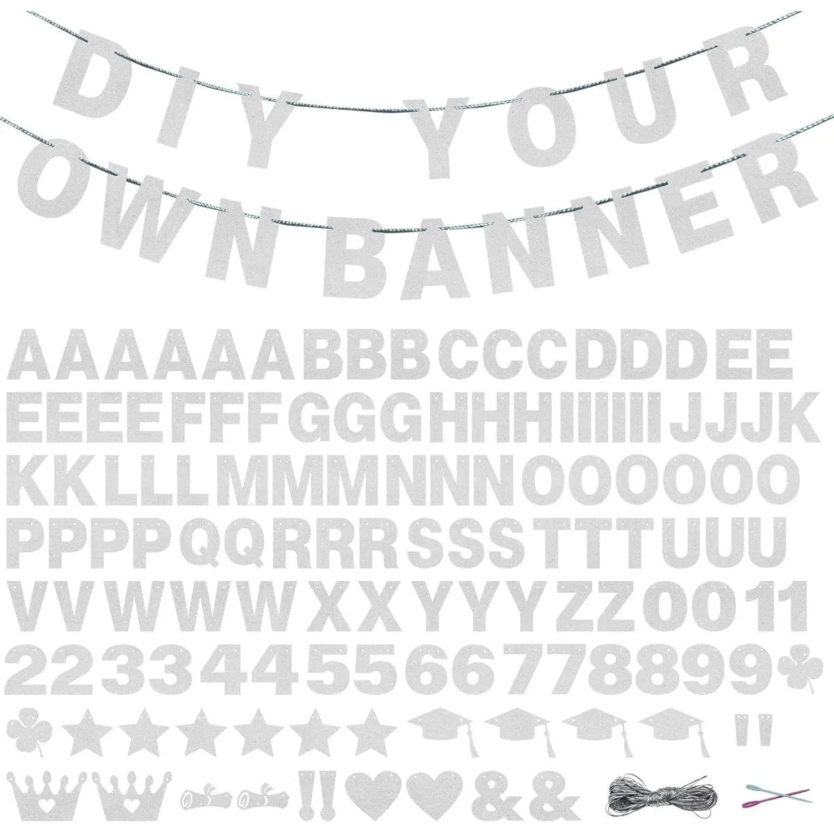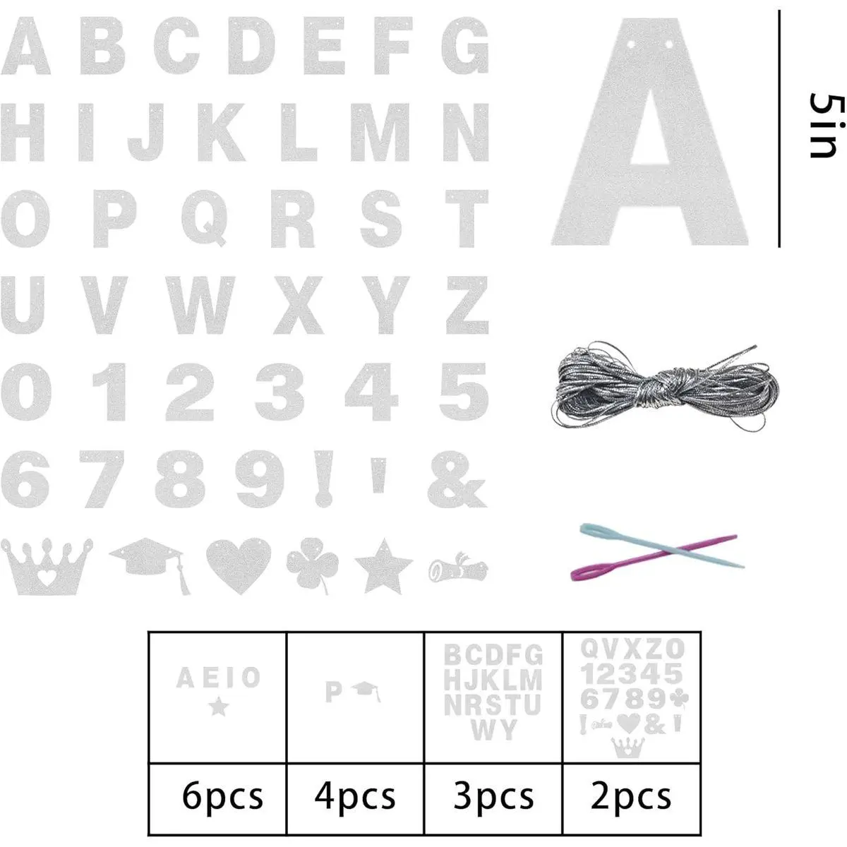 THE PACKAGE INCLUDES: You will receive 131 pieces of glittering golden letter flags. It includes 6 letters (E, I, O, A), 4 letters (P), 3 letters each (B, C, D, F, G, H, J, K, L, M, N, R, S, T, U, W, Y), 2 letters each (Q, V, X, Z), 2 pieces of number flags for each digit from 0 to 9, 24 symbol flags suitable for various occasions, 59 ft of silver ribbon, along with 2 threading devices (random colors). With such a large quantity, you can freely create the banners you need.
