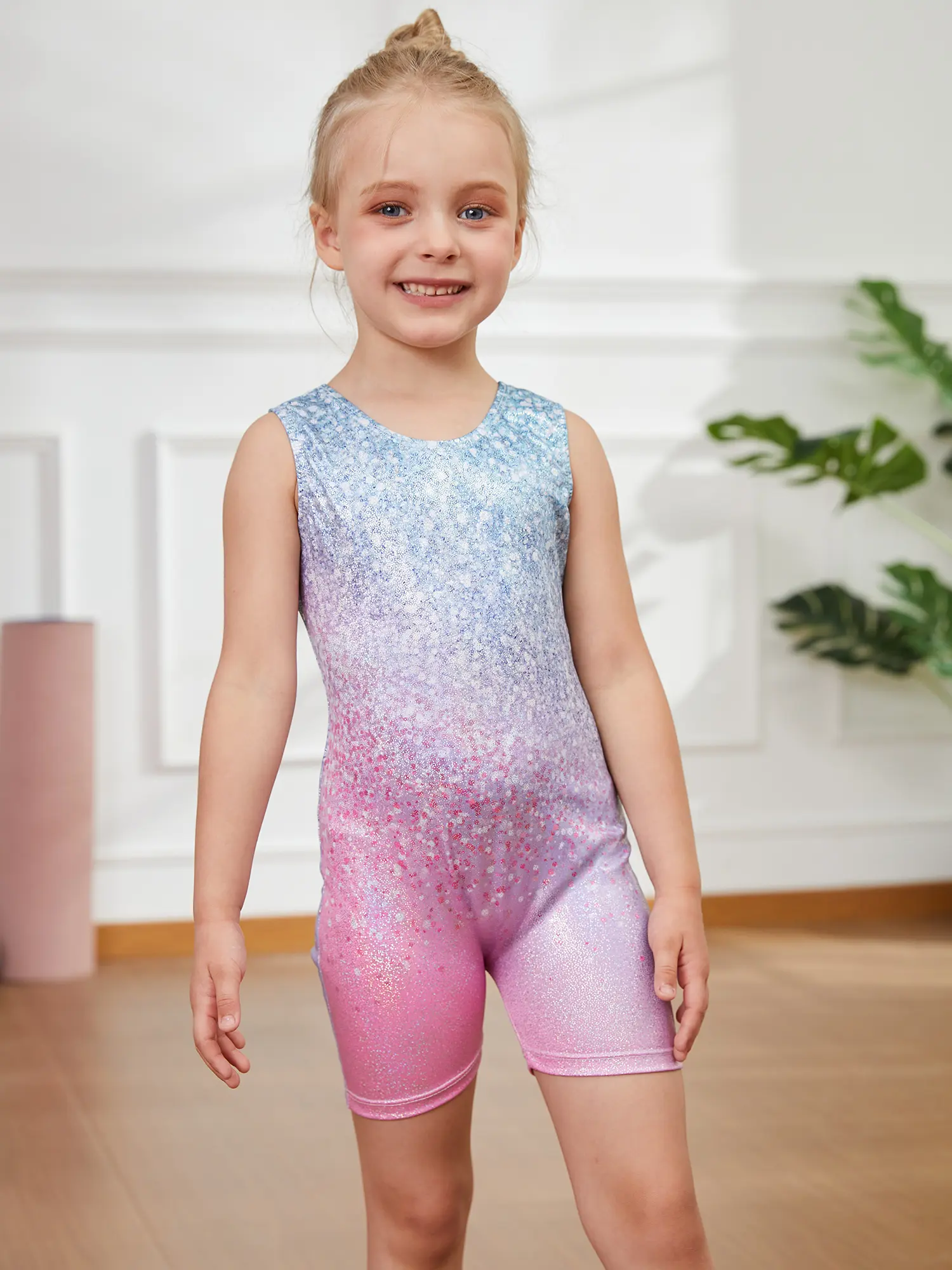 Leotards for Girls Gymnastics Toddler Dance Biketards Athletic Dance Wear Shiny Blue Hotpink