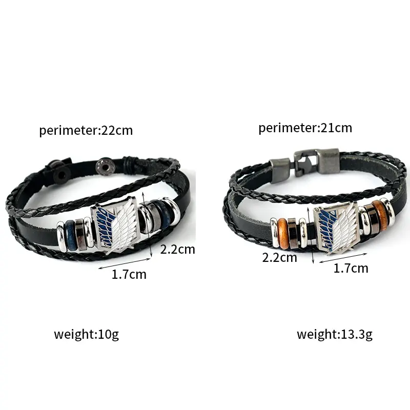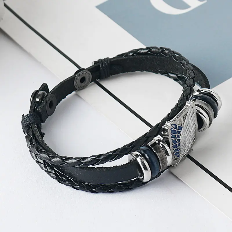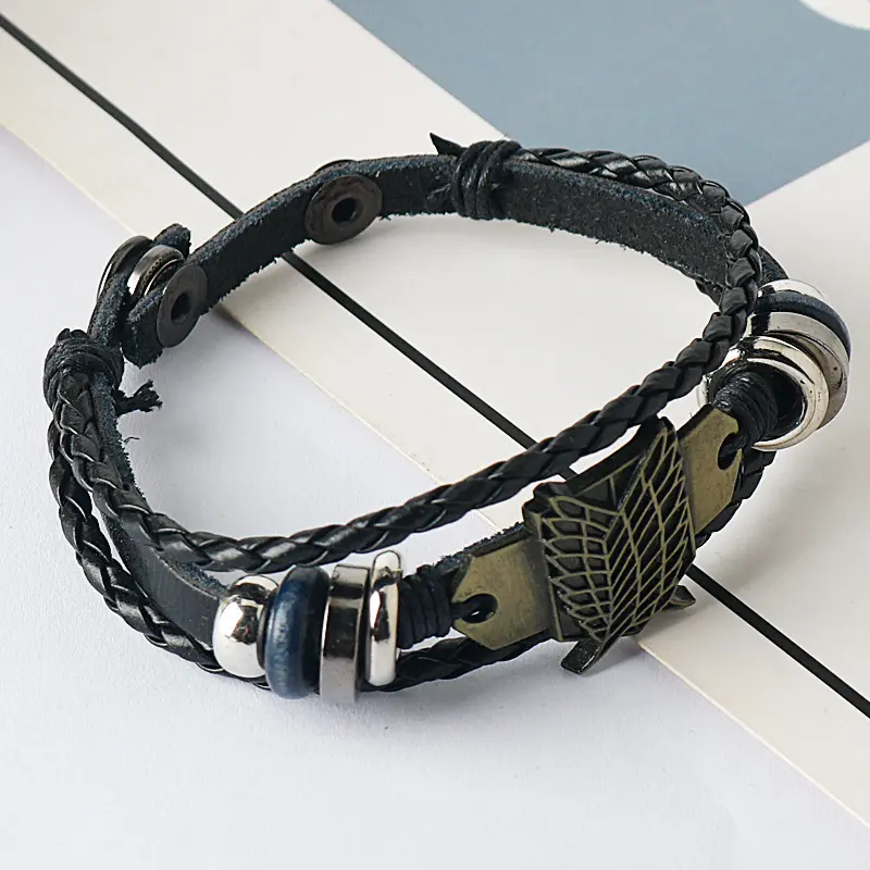Animation Attack on Titan badge Wings of Liberty bracelet, Cowhide bracelet vintage multi-layer bracelet Maximalist Jewelry