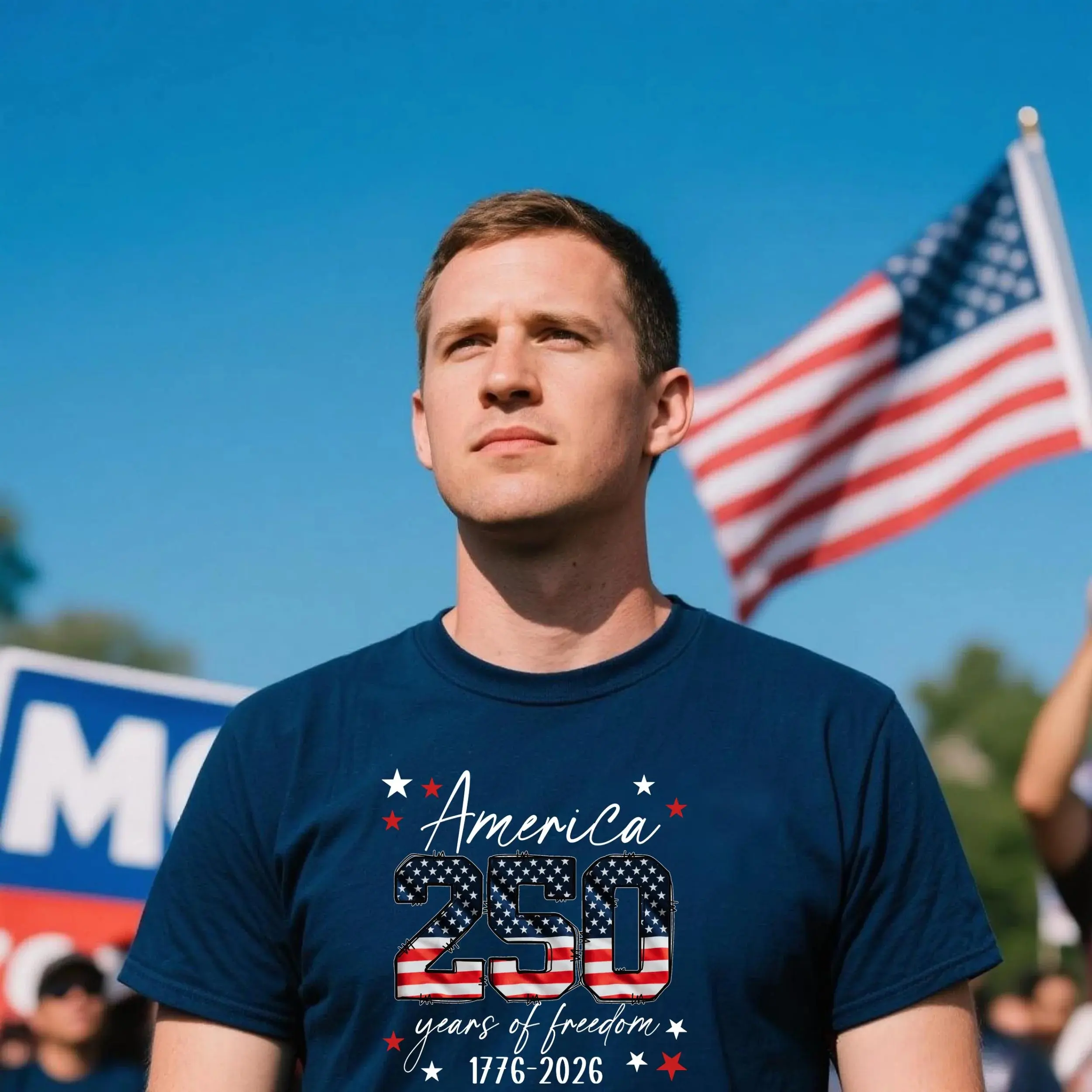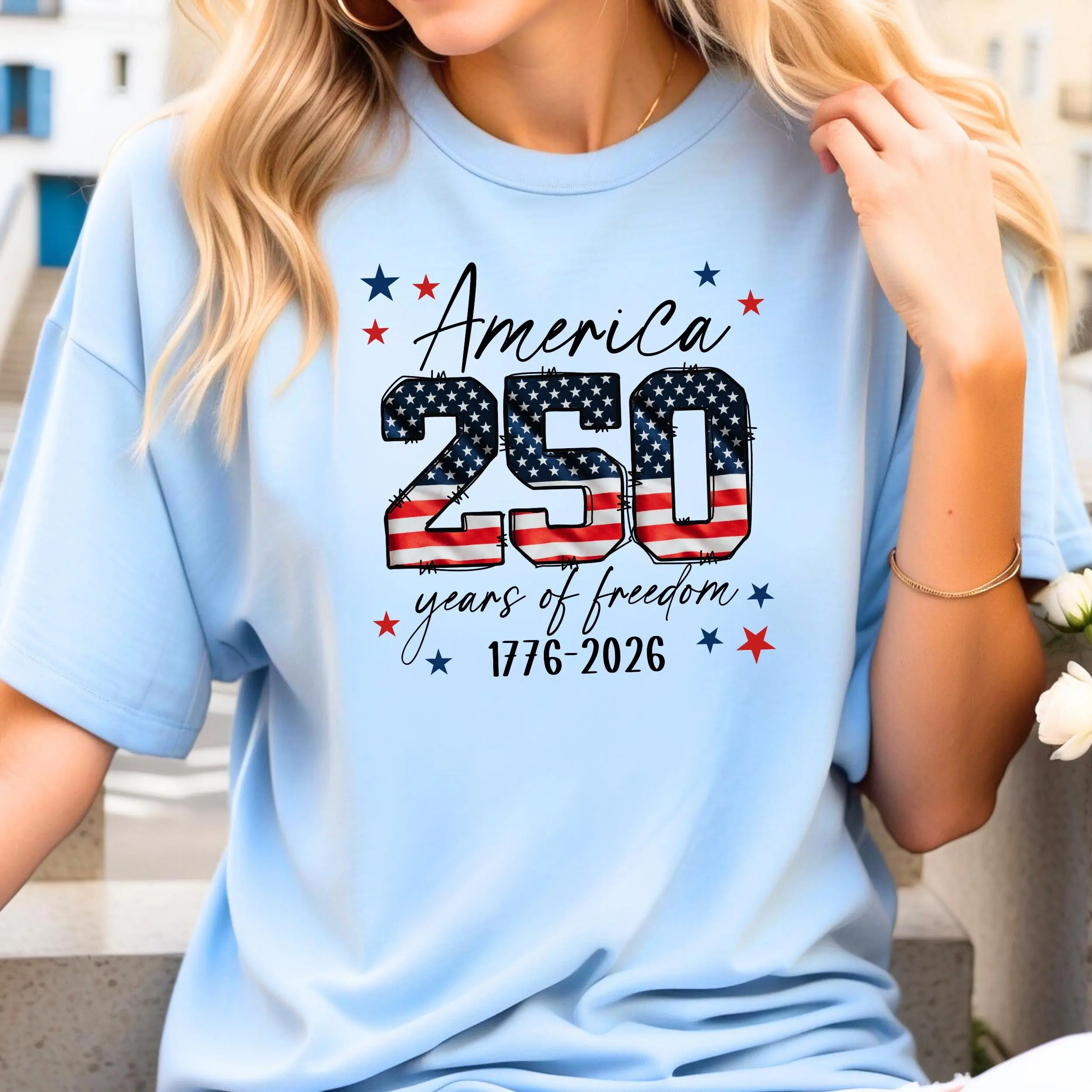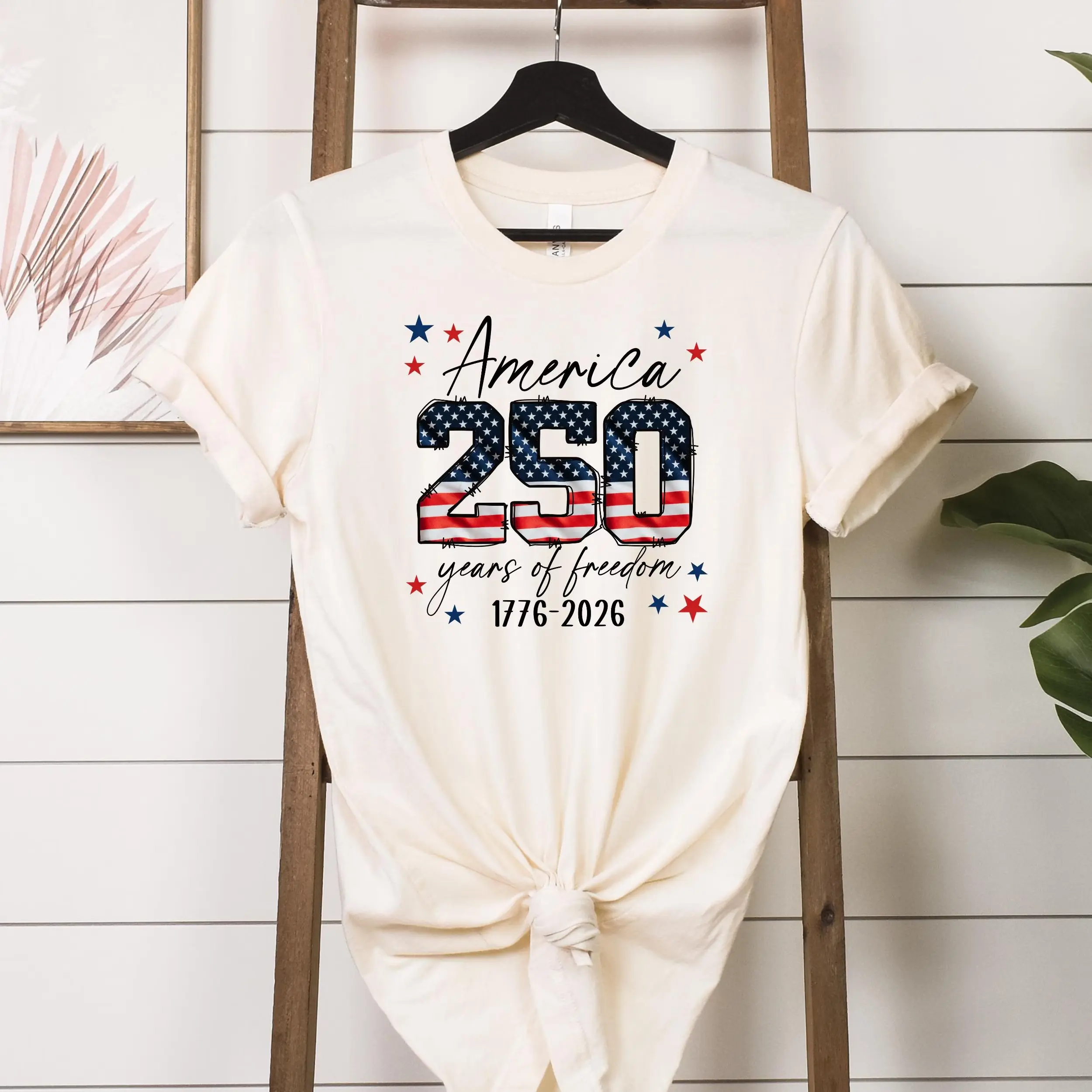 This shirt is suitable for anyone looking to celebrate the USA's 250th anniversary. It's a great choice for family events and Independence Day festivities. Stay festive and patriotic with this special shirt.