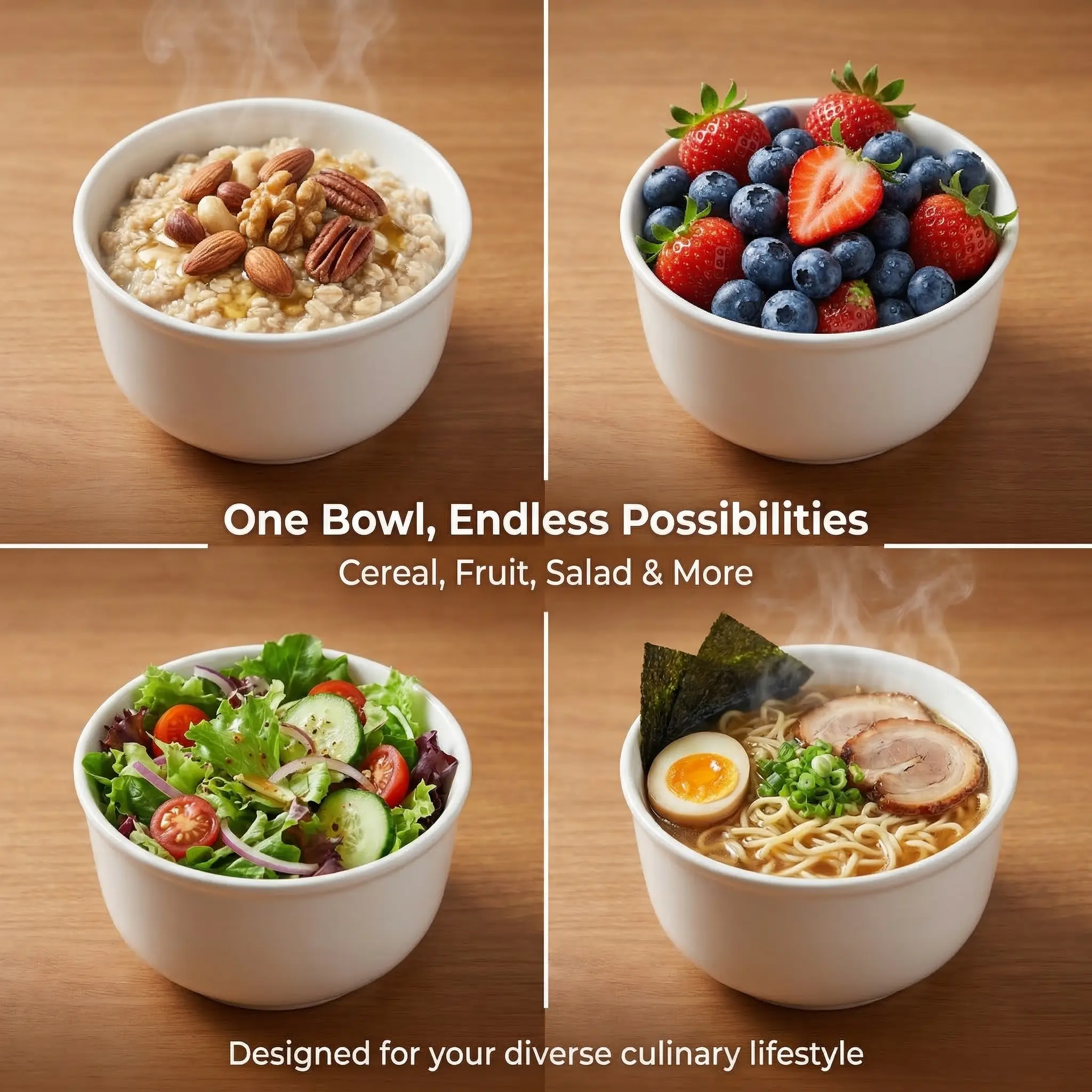 • 6pcs & 8pcs Porcelain Soup Bowls – Ideal for daily meals, family dinners, and parties. These 8oz white ceramic bowls are perfect for oatmeal, fruit, salad, ramen, and rice. They meet various storage needs, offering sufficient quantity for family use and meal prep.