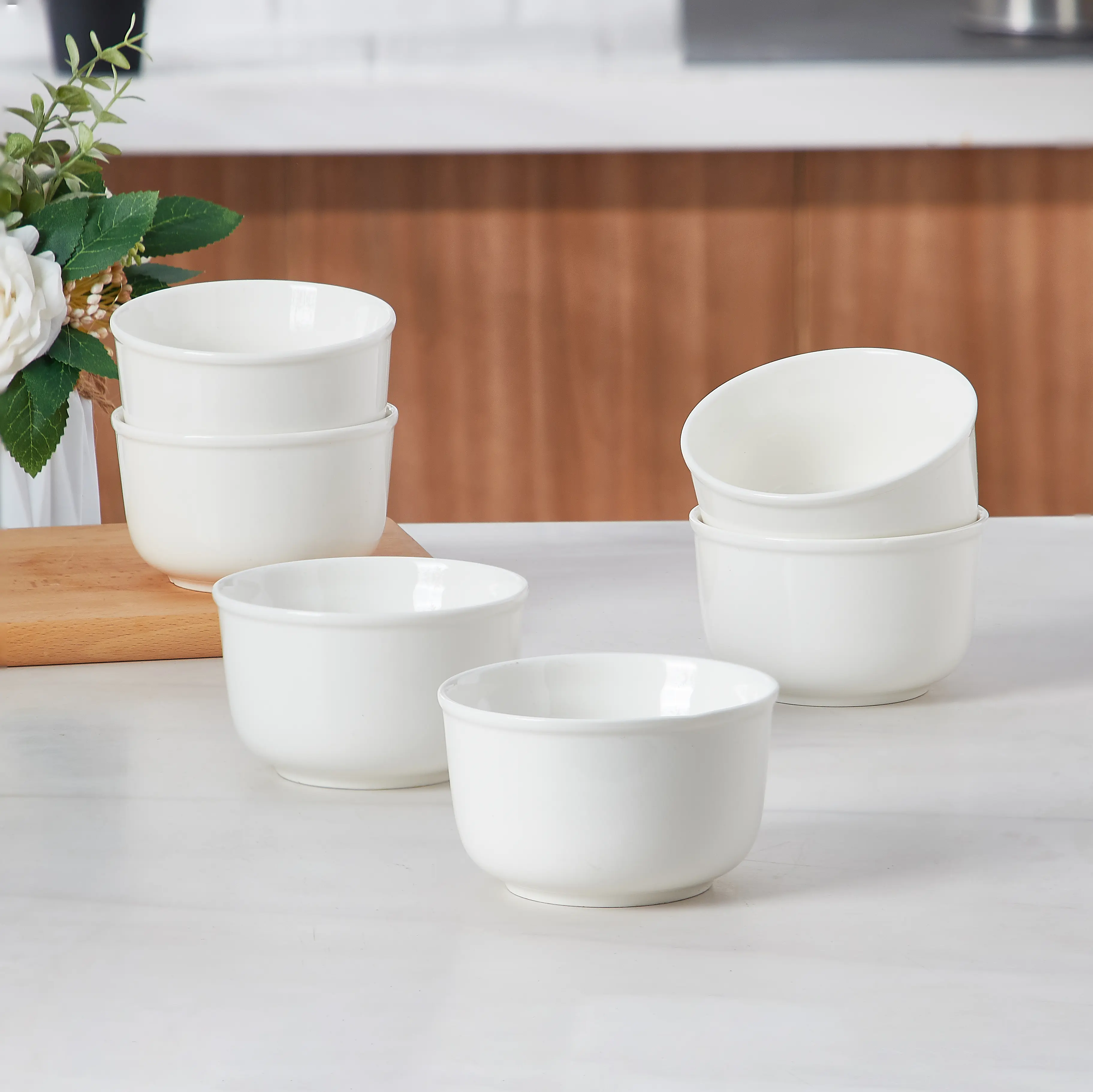 • With a standard size of 4*4*2.5 inches, these bowls are ideal for serving rice, sauce, dessert, snacks, and small dishes. The classic white design adds a simple and elegant touch to your kitchen tableware. Made of quality porcelain, they are microwave and dishwasher safe.