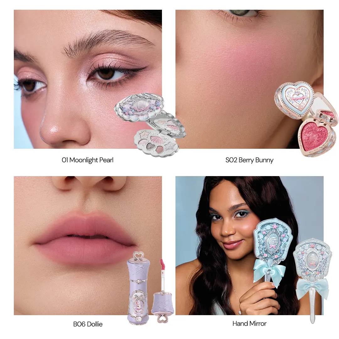 This full makeup set features soft pink tones that perfectly complement cool undertones and sensitive skin. Infused with a 75% nourishing oil blend, it offers long-lasting wear with no stickiness, ensuring a natural, fresh finish. The set includes a range of pink-hued products—from blush to lip color—all designed to deliver a delicate, youthful glow that aligns with spring’s vibrant energy. Ideal for everyday wear, it combines gentle formulas with a playful, elegant aesthetic, making it the perfect choice for those seeking a cohesive, bunny-inspired pink makeup look.