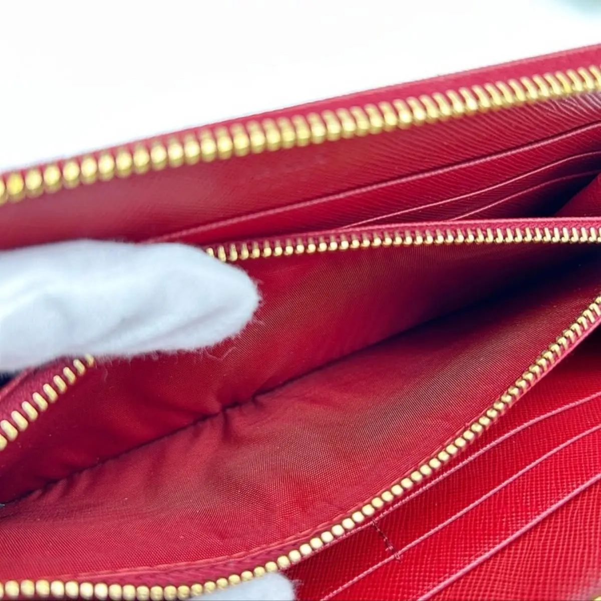 Pre-owned PRADA As Shown Shoulder Bags Saffiano Triangle Zip Around Wallet Red Leather 2101218850000