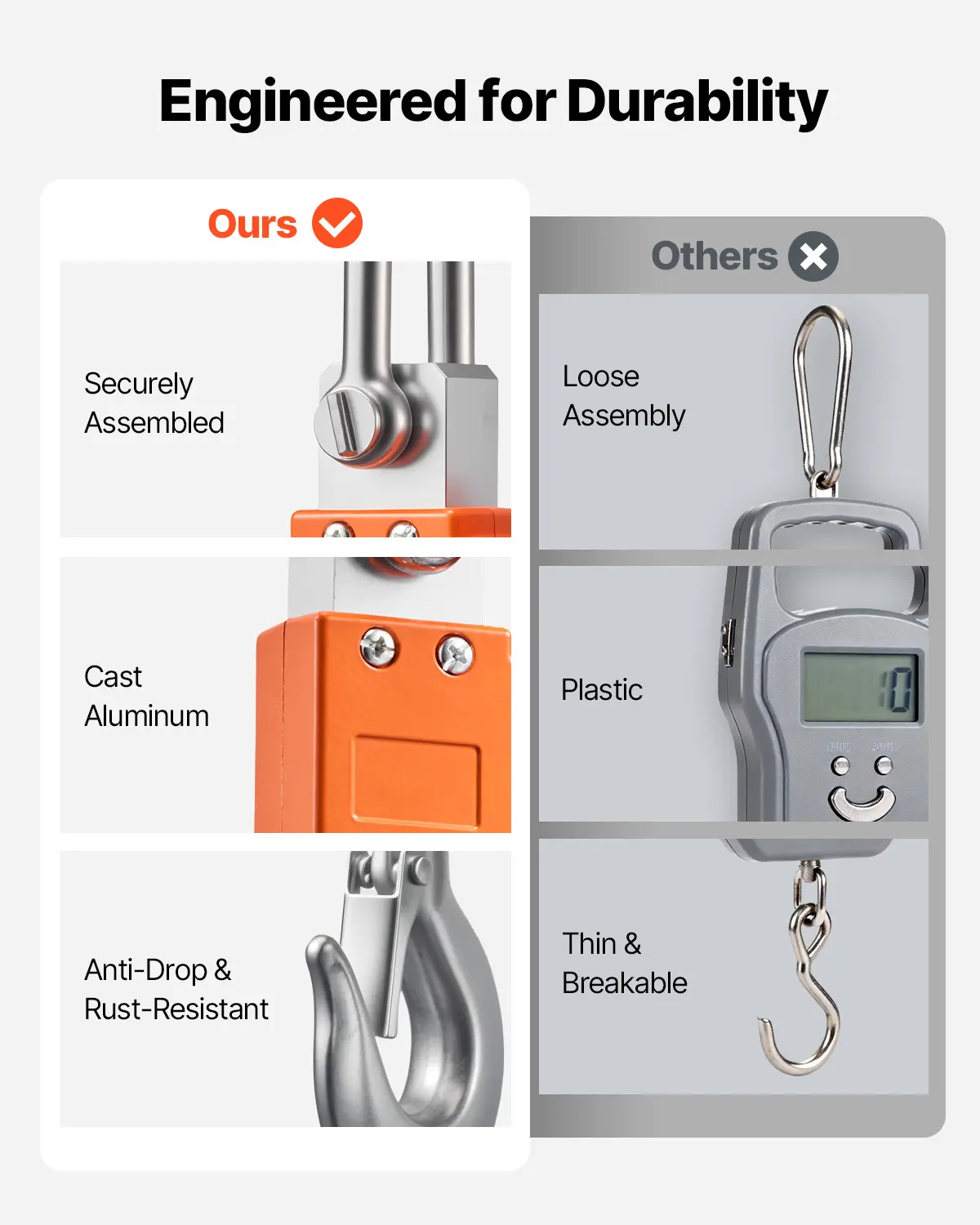 Wide Application: This hanging weight scale tackles factory materials, dock receiving, farm livestock, and daily catches with ease. The versatile design delivers reliable weighing across many professional settings