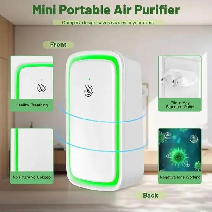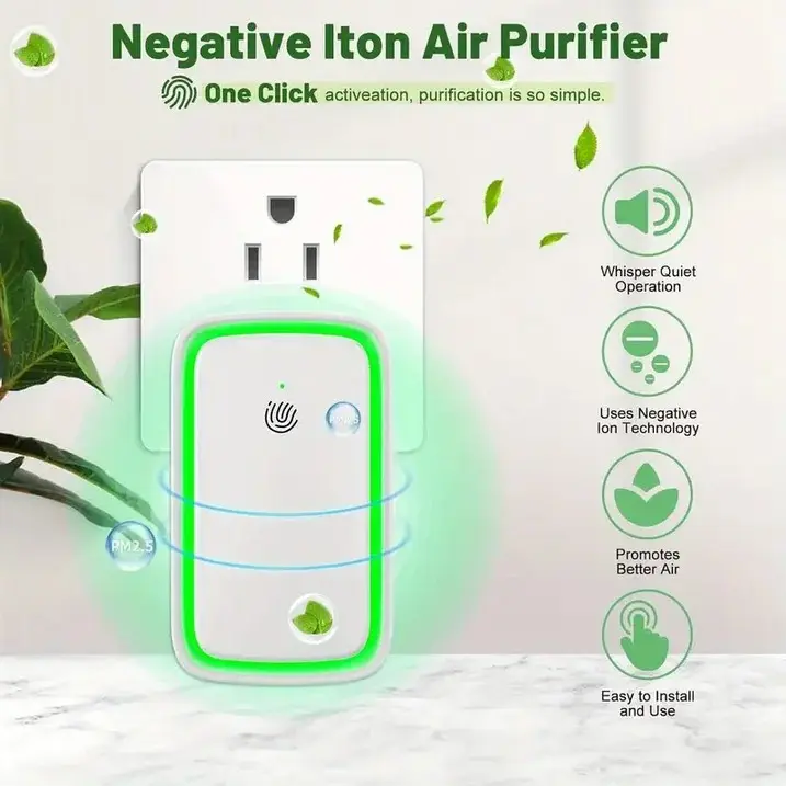 Negative Ion Emission: Through an electronic brush mechanism, it releases up to 50 million negative ions; these ions bind with airborne particulate matter, promoting their aggregation and subsequent settlement.