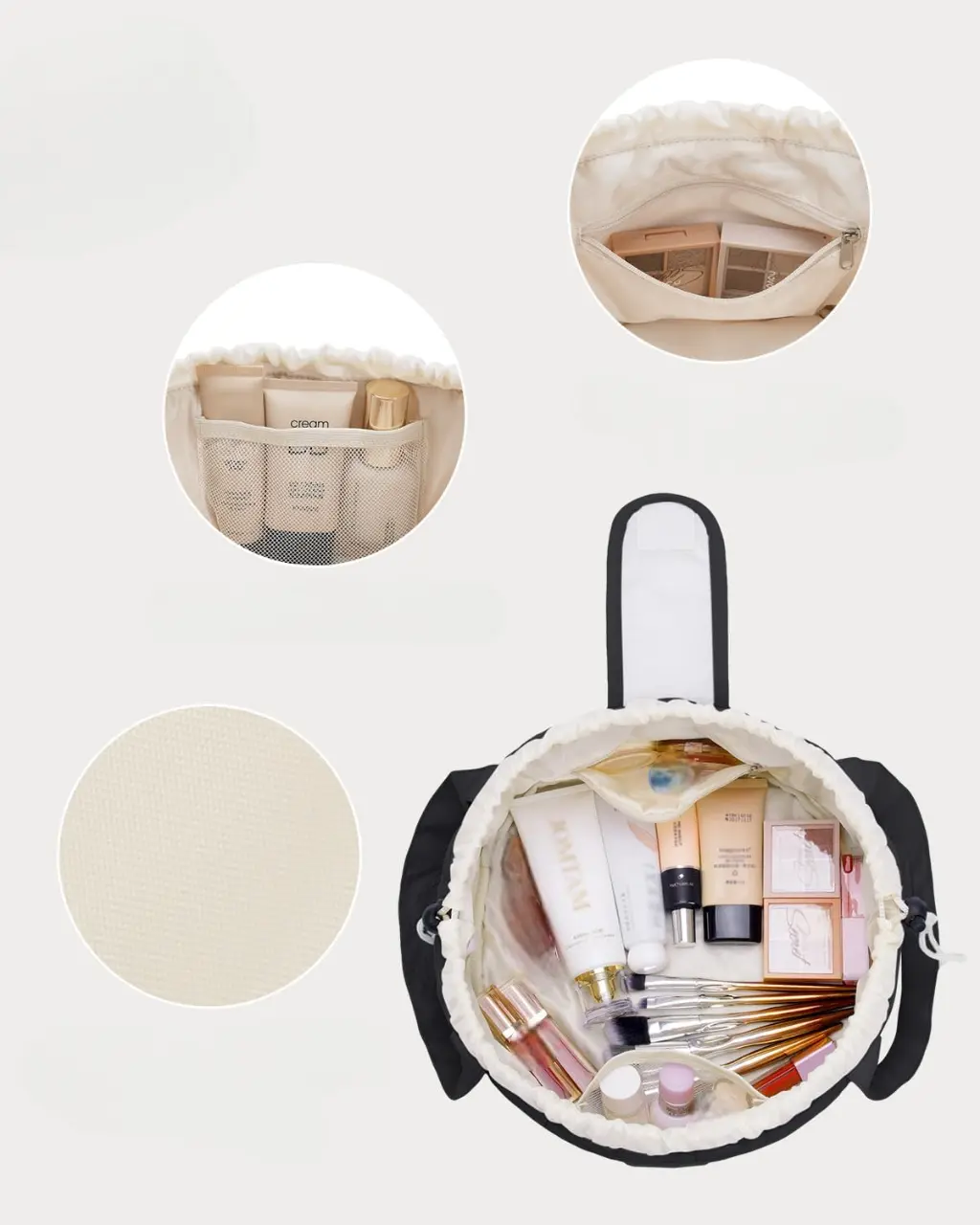 ·Easily Accessible. Everything is easily accessible when opened. Inner zippered pocket and mesh pocket offer quick access to frequent uses items. Just keep all your makeup in one bag and find everything without rummaging around