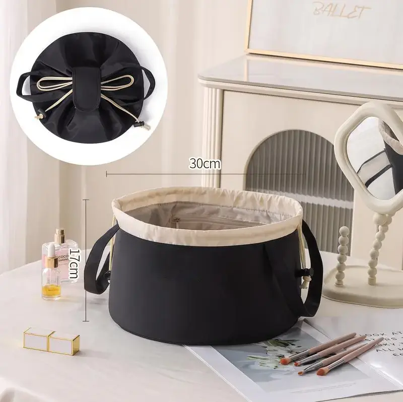 ·Portable & Roomy. Size 11.8" x 6.7" x 11.8", weighing only 5.3 ounce, decent size without any bulkiness. Easily fit more travel-size toiletries and large skin-care products such as lotion, cream, facial cleanser, foundation, concealer, mascara, eye shadow, powder, blush, lipstick, makeup brushes