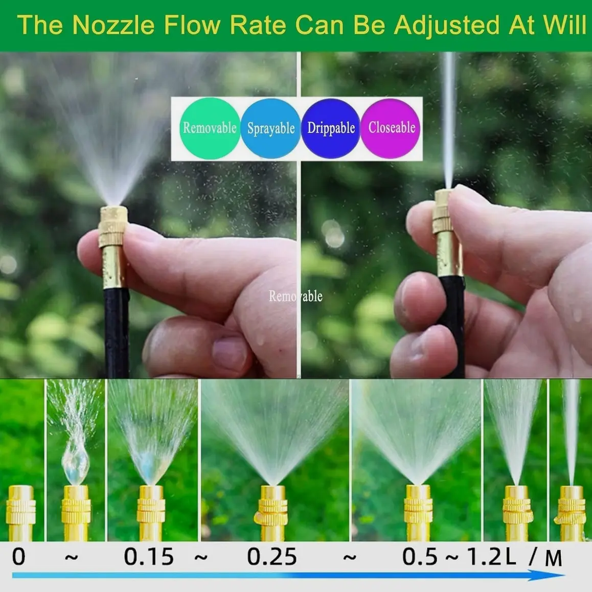 💧 Our adjustable drip watering system saves over 70% of water. Control the water flow rate by rotating the copper nozzle to meet the needs of different plants. Perfect for efficient watering.