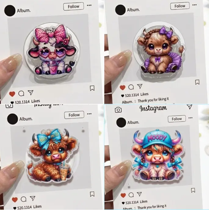 (4 Options) Pretty Moody Highland Cow MagSafe Phone Grip, Baby Cow With Milk Tea Phone Holder, Cute Cow Kindle Grip, Cartoon Grip Holder, Gifts For Girls Boys
