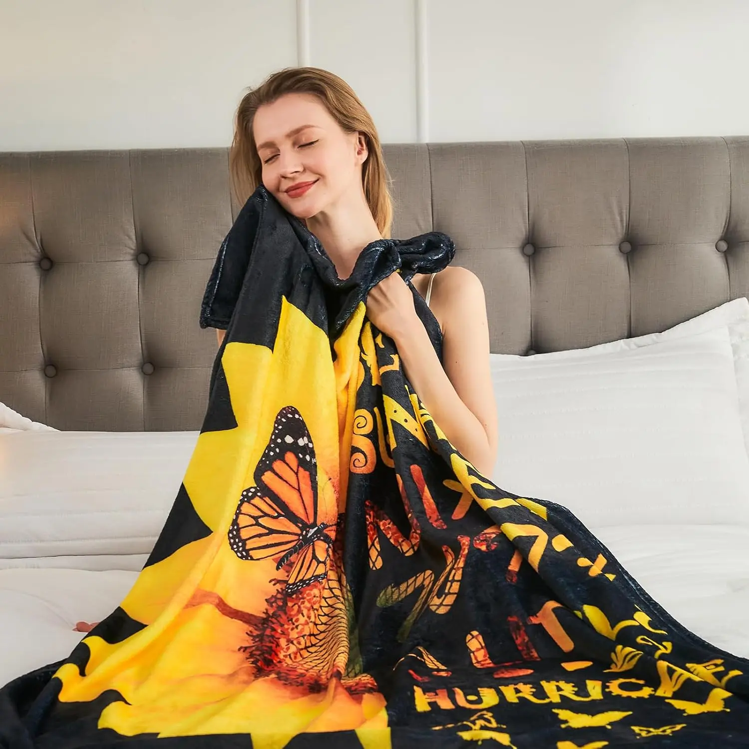 The brightly colored sunflower pattern and encouraging words, placed on the car seat, living room chair or sofa, or on the bed in the bedroom, will become a beautiful decoration. And this blanket is machine washable, ironable, not easy to fade or shed, very practical.