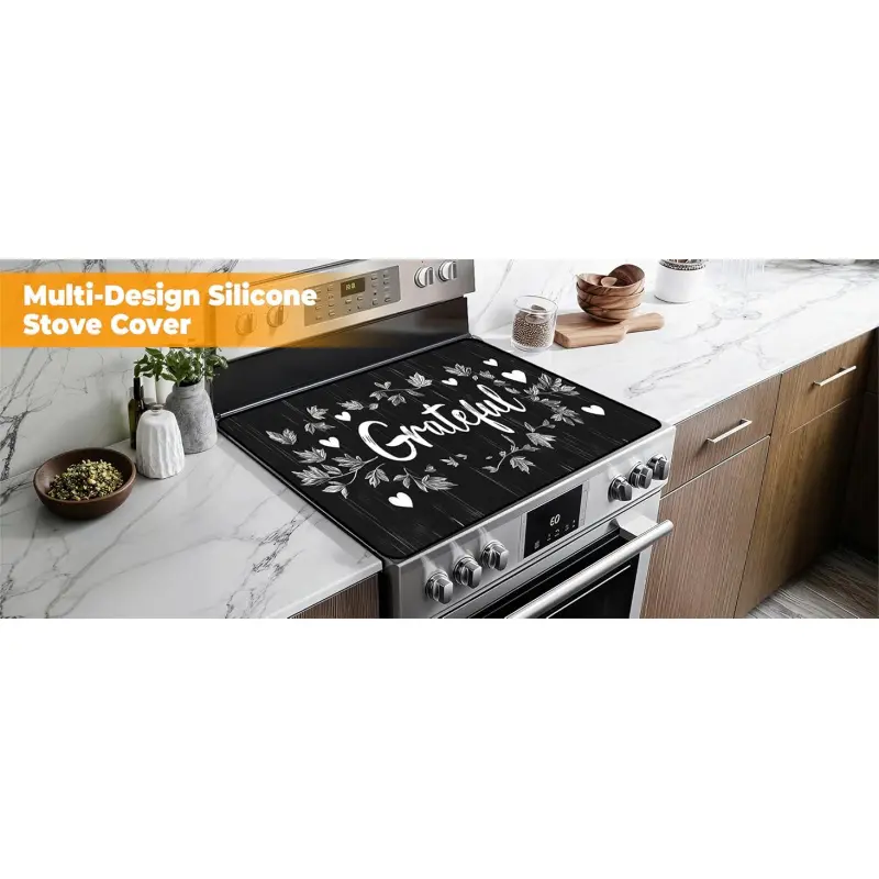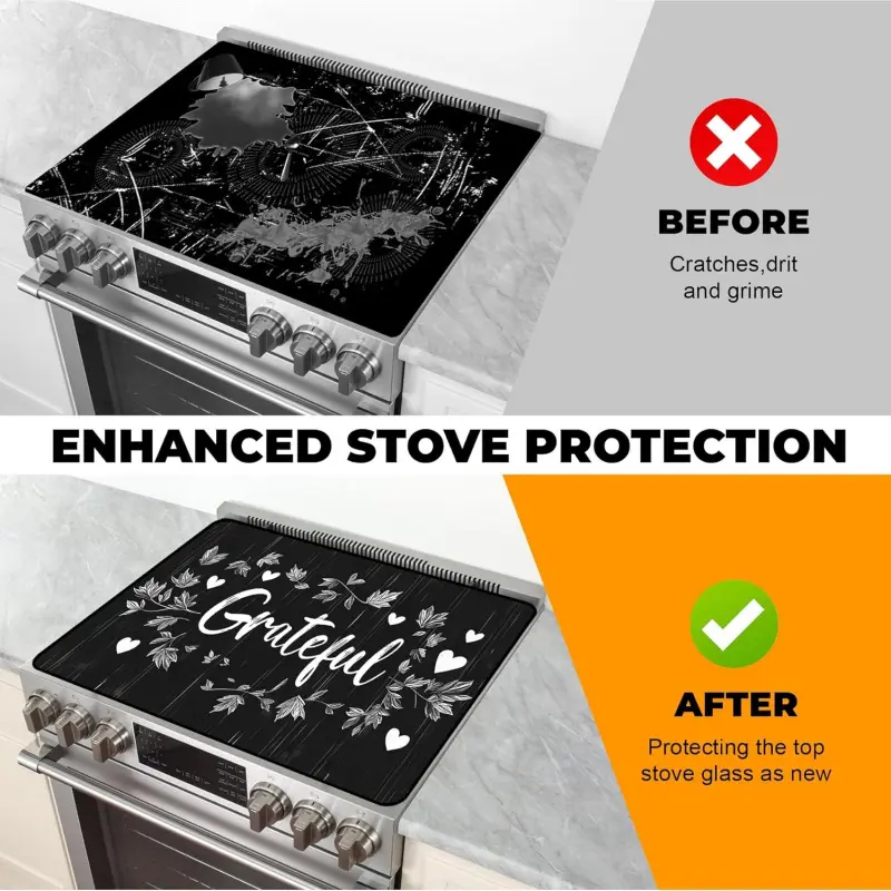 JOYFINITY Heat-Resistant Glass Stove Top Cover with Anti-Slip Rubber Coating – 28.4*20.5in Electric Stove Protector, Scratch-Resistant, Expands Counter Space, Stylish Kitchen Decor