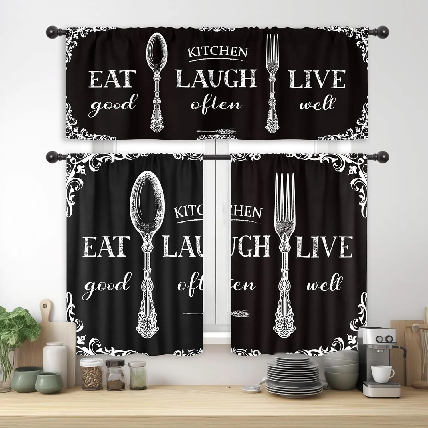 Add a Touch of Rustic Elegance to Your Home! Refresh your windows with the Riyidecor 3-Piece Kitchen Curtain Set. Featuring a timeless black-and-white color palette and a charming rustic kitchenware design, these curtains are the perfect way to bring a cozy, country farmhouse vibe to your favorite spaces.