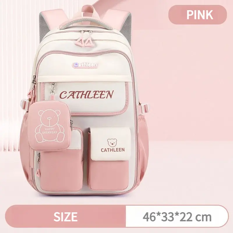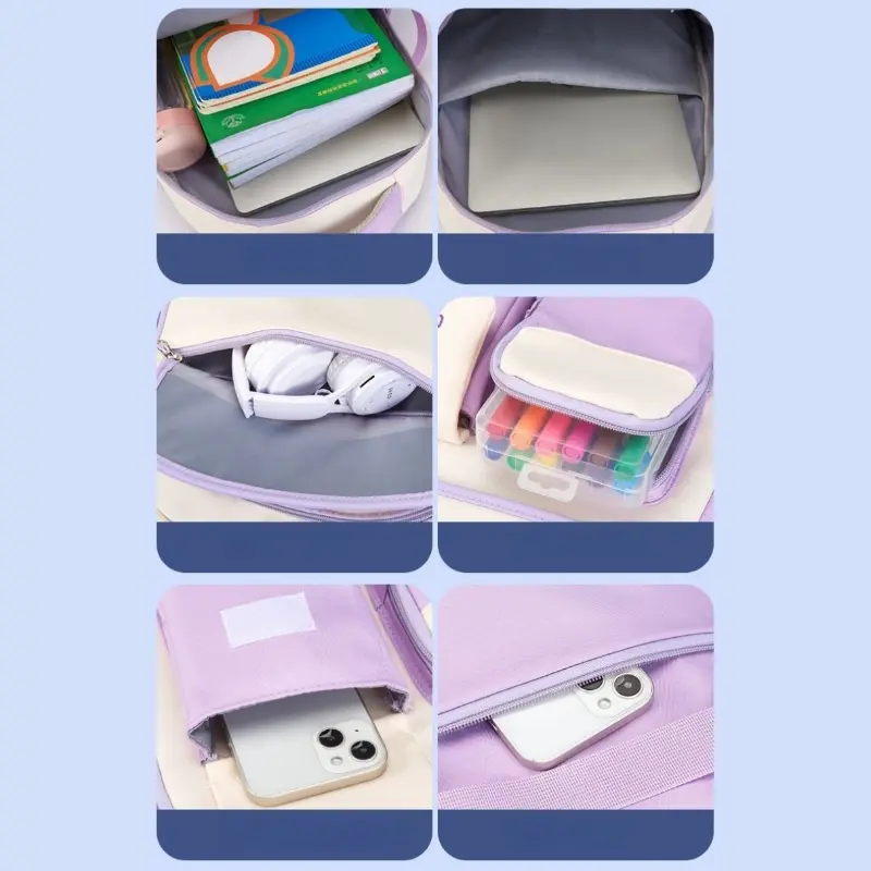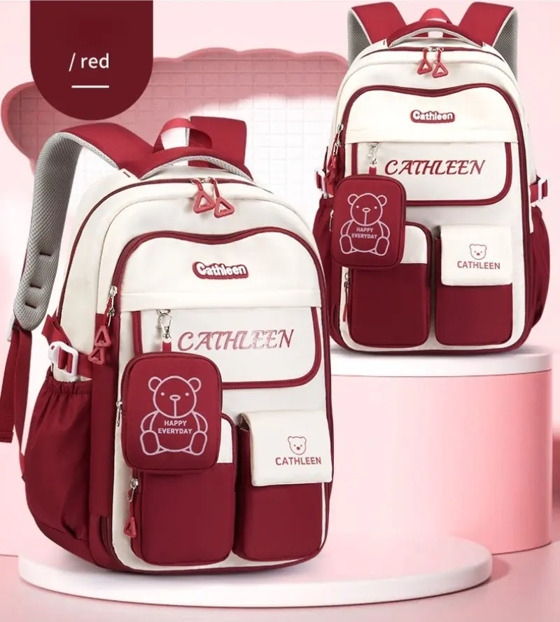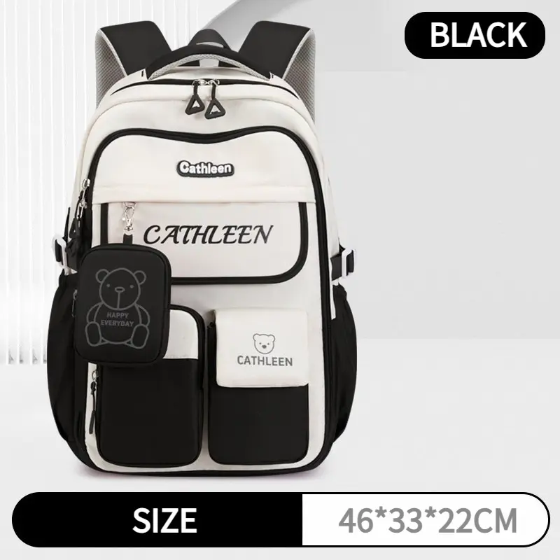 Color Block Cute Bear Backpack, Large Capacity School Bag, Casual Outdoor Backpack Bag