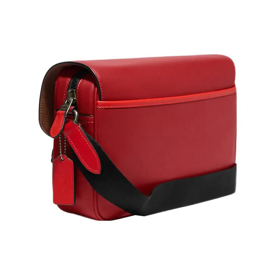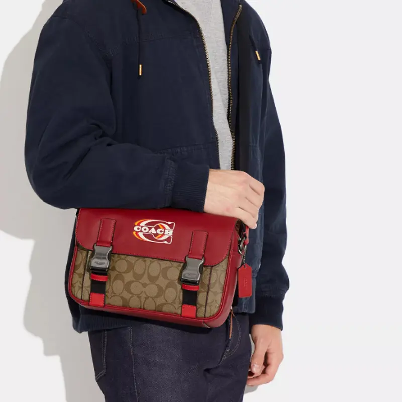 COACH Track 27 Crossbody Bag – Large Size, Men’s Edition (Red & Khaki)