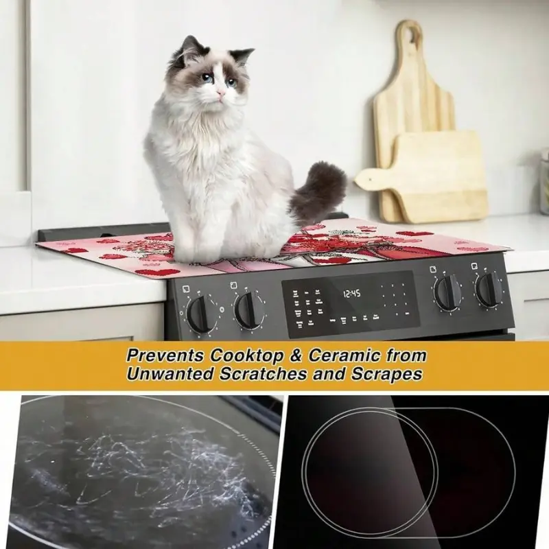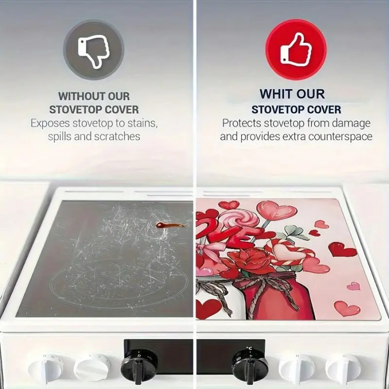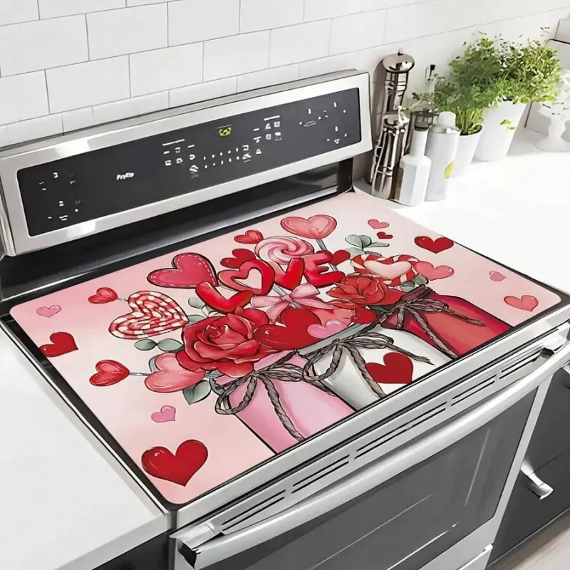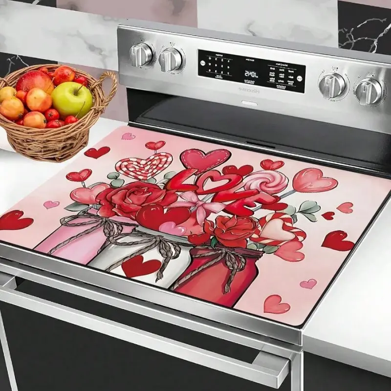 JOYFINITY 1pc Stove Cover Protector, Valentine's Day, Love Hearts And Roses In Jars Pattern For Stove Cover Protector, 28.4*20.5in Easy To Clean For Kitchen, Washing Machine, Dryer, Stovetop Panel Protector